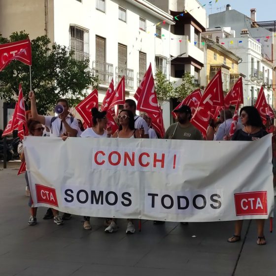 Con el lema “ Todas somos Conchi” trabajadoras del servicio de Ayuda a domicilio de la empresa Monsecor y representantes sindicales de CTA,
