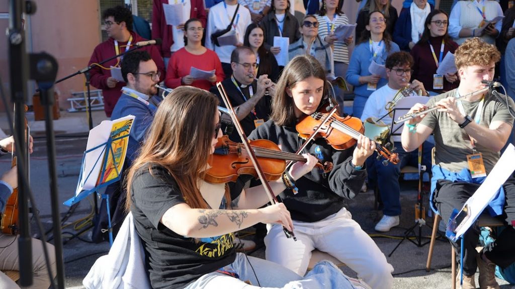 La tarde del sábado estuvo llena de testimonios, tanto de proyectos locales como de experiencias internacionales de voluntariado, y concluyó con una vigilia en la que el teatro, la música africana y la adoración al Santísimo crearon un clima de oración profundo. Los jóvenes vivieron momentos de adoración al Santísimo en recogimiento y alegría, cantando y celebrando juntos la espiritualidad salesiana.