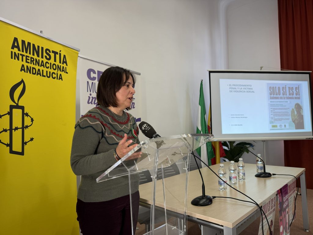 Por su parte, la coordinadora de Amnistía Internacional en Andalucía, Paz Larraondo coordinadora Amnistia Internacional en Andalucía, destacó el compromiso histórico de la organización con el liderazgo feminista y la lucha contra la violencia hacia las mujeres, especialmente la violencia sexual.