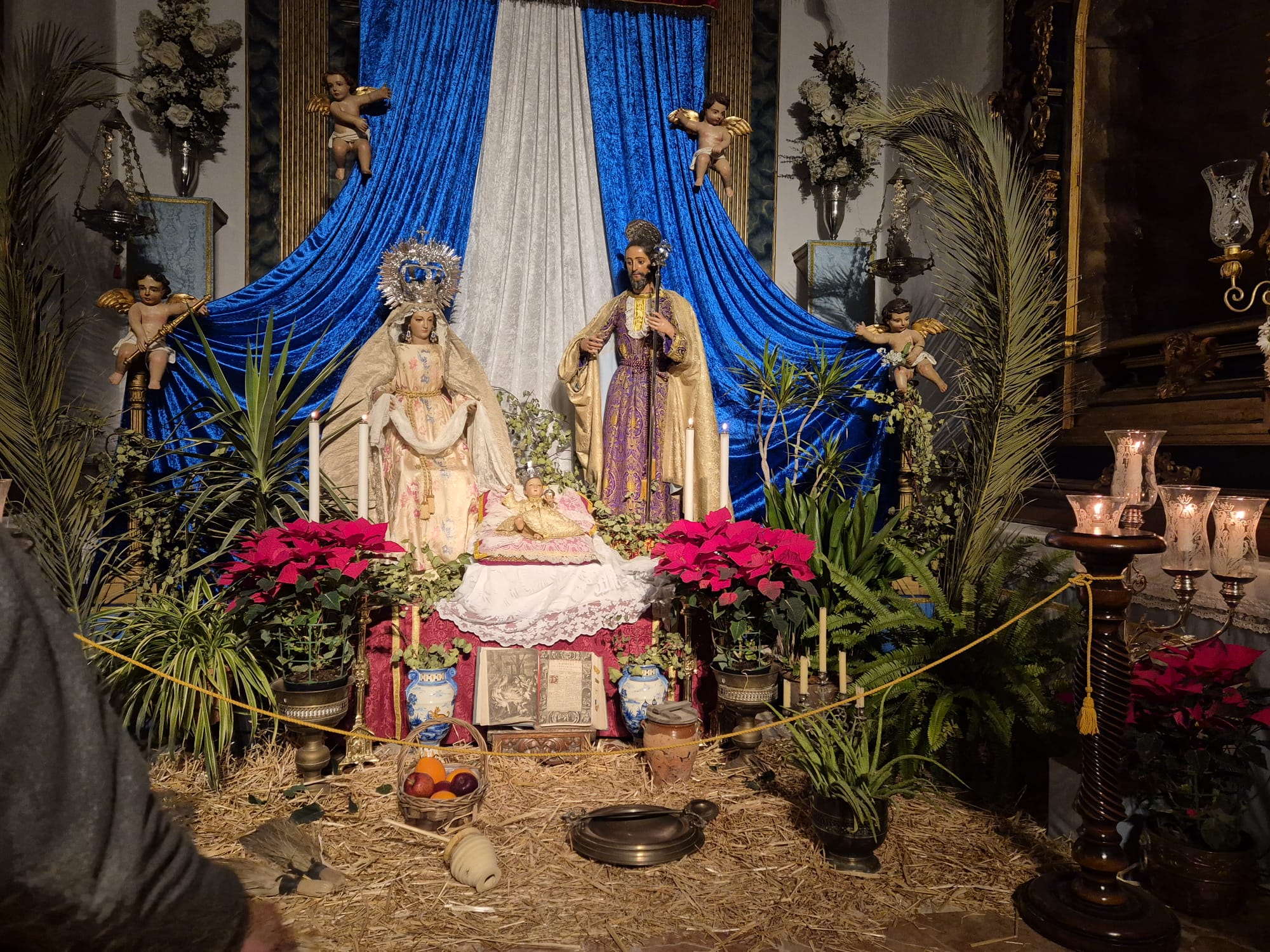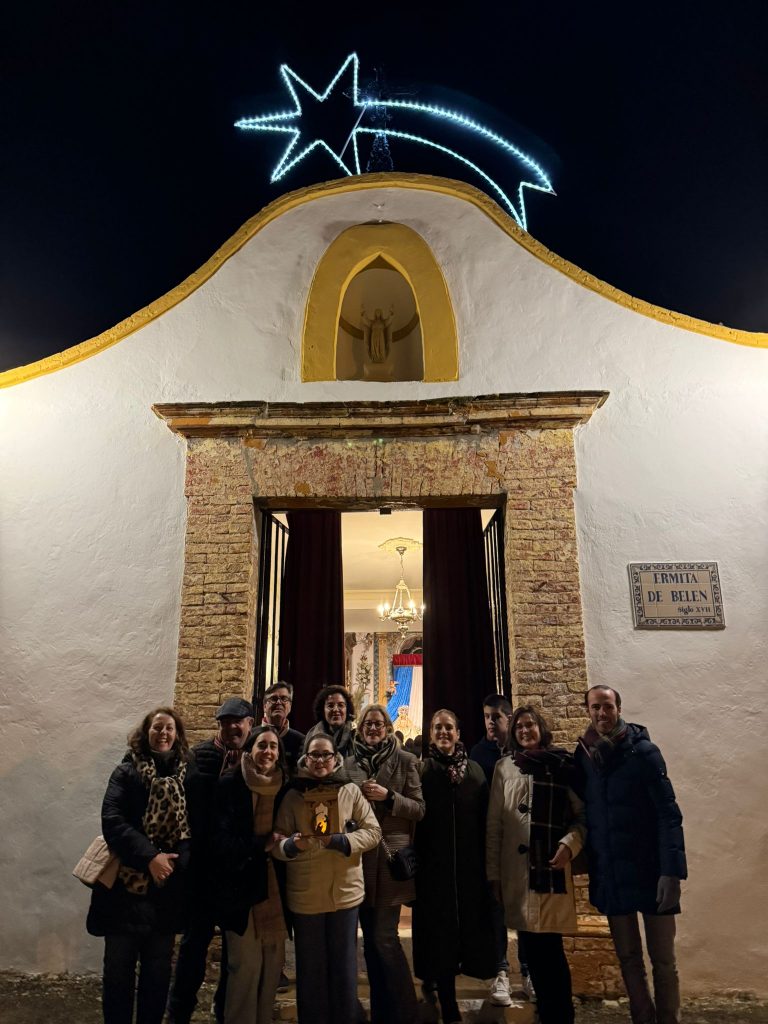 La Ermita de Belén se convirtió en el corazón de la Navidad con una estampa llena de simbolismo: sobre la ermita una estrella anuncia el nacimiento de Jesús y, en el interior, la Virgen de Belén y San José, revestidos con antiguos mantos de tisú de oro, contemplando al Niño recostado en su cuna entre paja y ofrendas.
