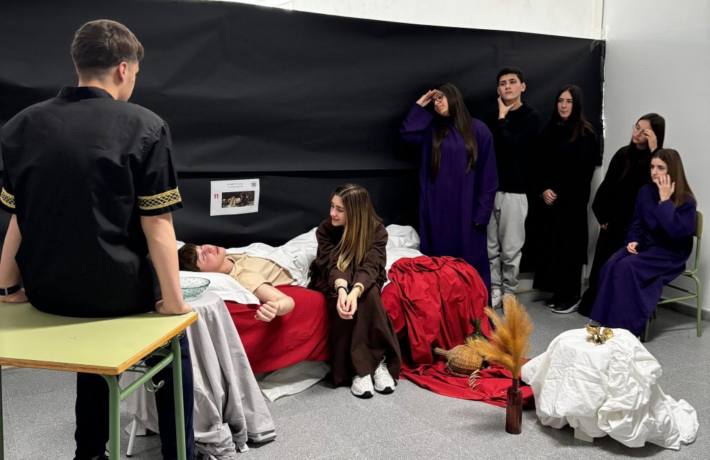 Más de 100 alumnos y alumnas de 1º de ESO, 1º de Bachillerato, con la colaboración de los guías de 4º de ESO y 2º de Bachillerato, transformaron las tres plantas del centro educativo en un museo viviente. 14 grandes obras de arte de diversas épocas se hicieron presentes a través de representaciones en las que los estudiantes no solo observaban, sino que vivían el arte. Desde la antigua Roma hasta el arte social del siglo XIX, cada obra cobró vida de manera dinámica y emocional.