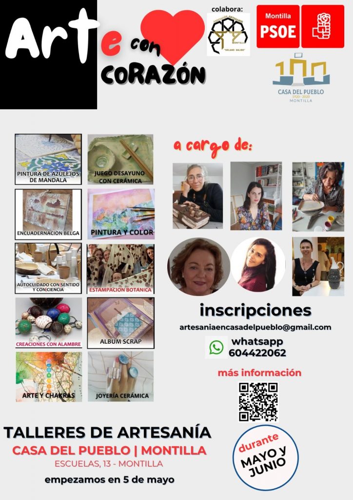 La Casa del Pueblo de Montilla abre sus puertas a la artesanía con una nueva propuesta cultural dirigida a toda la ciudadanía. ‘Arte con Corazón acoge a diez artesanas que ofrecerán talleres de distintas disciplinas artísticas durante los meses de mayo y junio.
