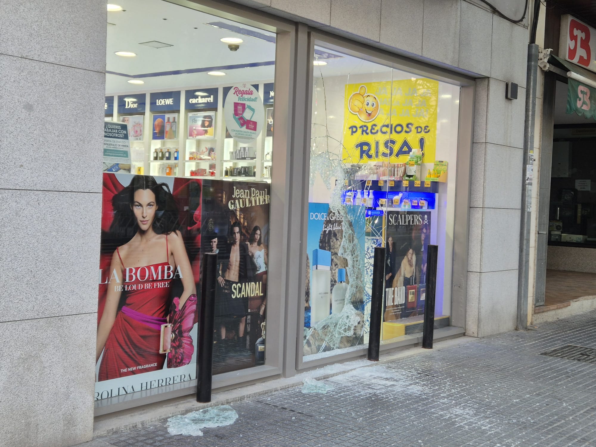 El establecimiento AROMAS de Montilla ha vuelto a sufrir un robo. En esta ocasión, las medidas de seguridad, que incluían bolardos protectores en todos los escaparates, no han sido suficientes para evitarlo.