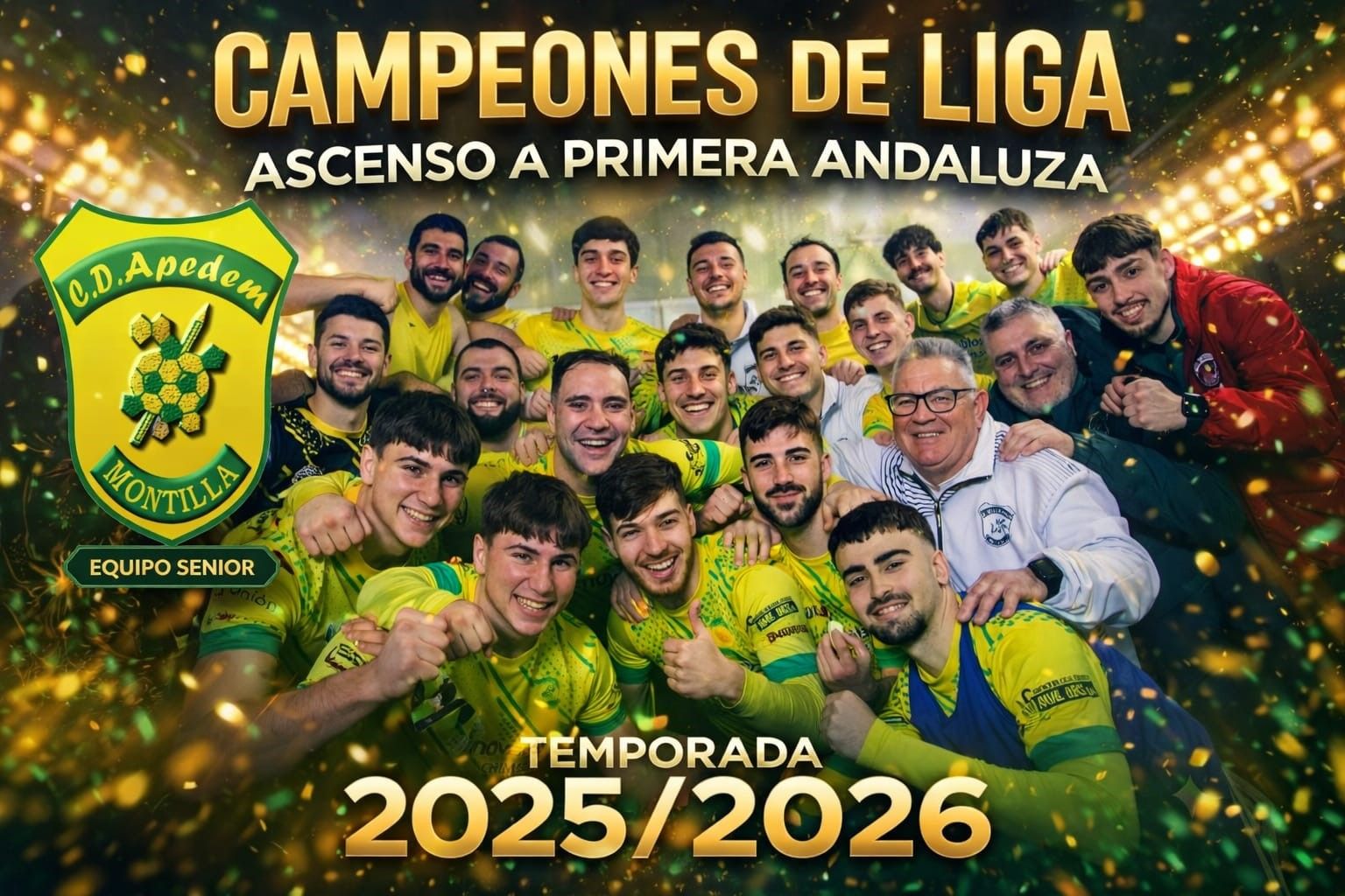 Temporada para el recuerdo del equipo sénior del CD Apedem Montilla, que culmina un año espectacular proclamándose campeón de liga 2025-2026 y logrando el ansiado ascenso a Primera Andaluza.