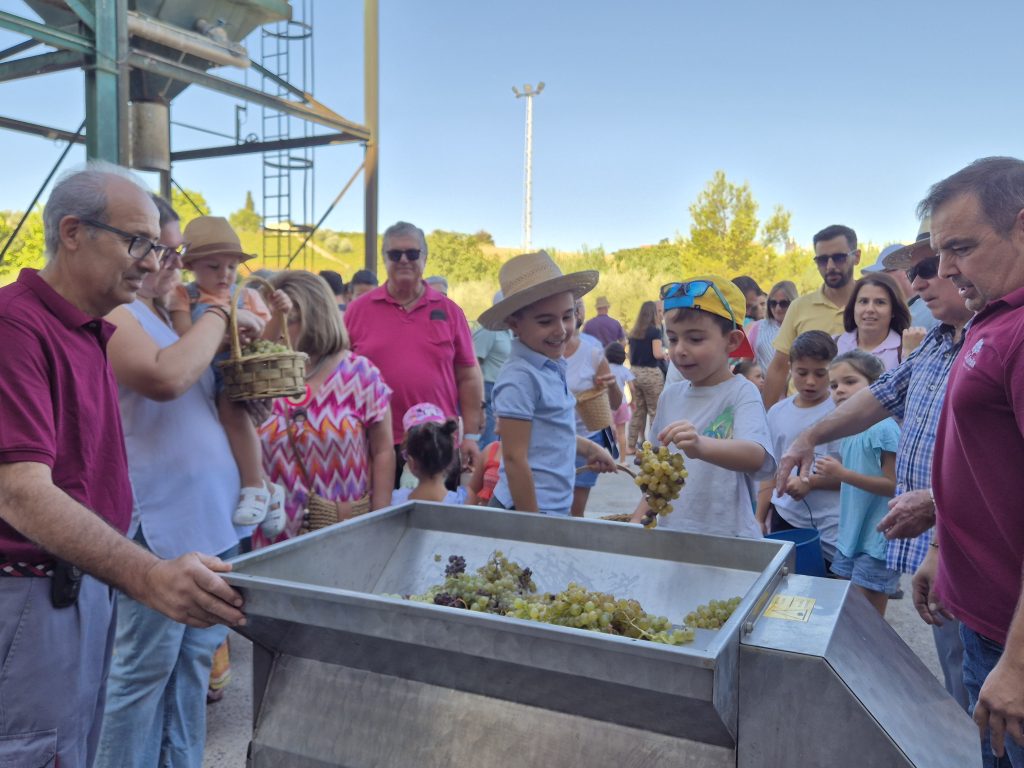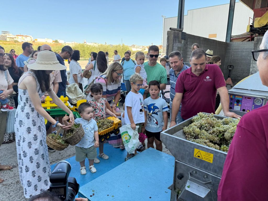 El lagar de Cooperativa La Unión ha celebrado, por tercer año consecutivo, su tradicional Vendimia Infantil, una actividad que ha duplicado el número de participantes con 182 niños y niñas acompañados de sus familias.