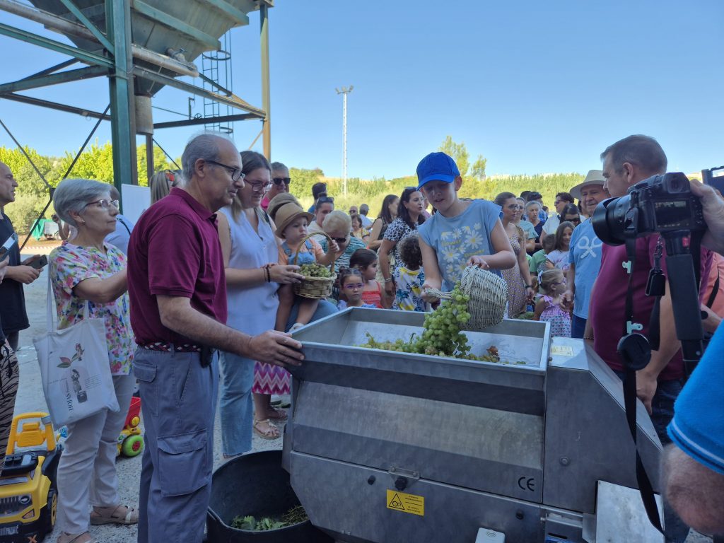 La ilusión y la emoción de ver a los más pequeños con todo el protagonismo, portando sus racimos de uva en pequeños y coloridos tractores y remolques, en carritos o en canastos, imitando a los mayores, para conocer de cerca el proceso que sigue la uva desde que se corta de la cepa hasta que se convierte en mosto, se ha compartido esta mañana en familia. La actividad se cerró con un desayuno molinero para los participantes.
