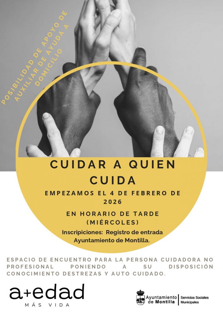 El Ayuntamiento de Montilla, a través del Área de Servicios Sociales, pone en marcha una nueva edición del programa “Cuidar a quien cuida”, una iniciativa dirigida a personas cuidadoras de personas en situación de dependencia, con discapacidad o enfermedad mental, con el objetivo de mejorar su bienestar físico, emocional y social, así como prevenir y abordar la sobrecarga asociada a las tareas de cuidado.