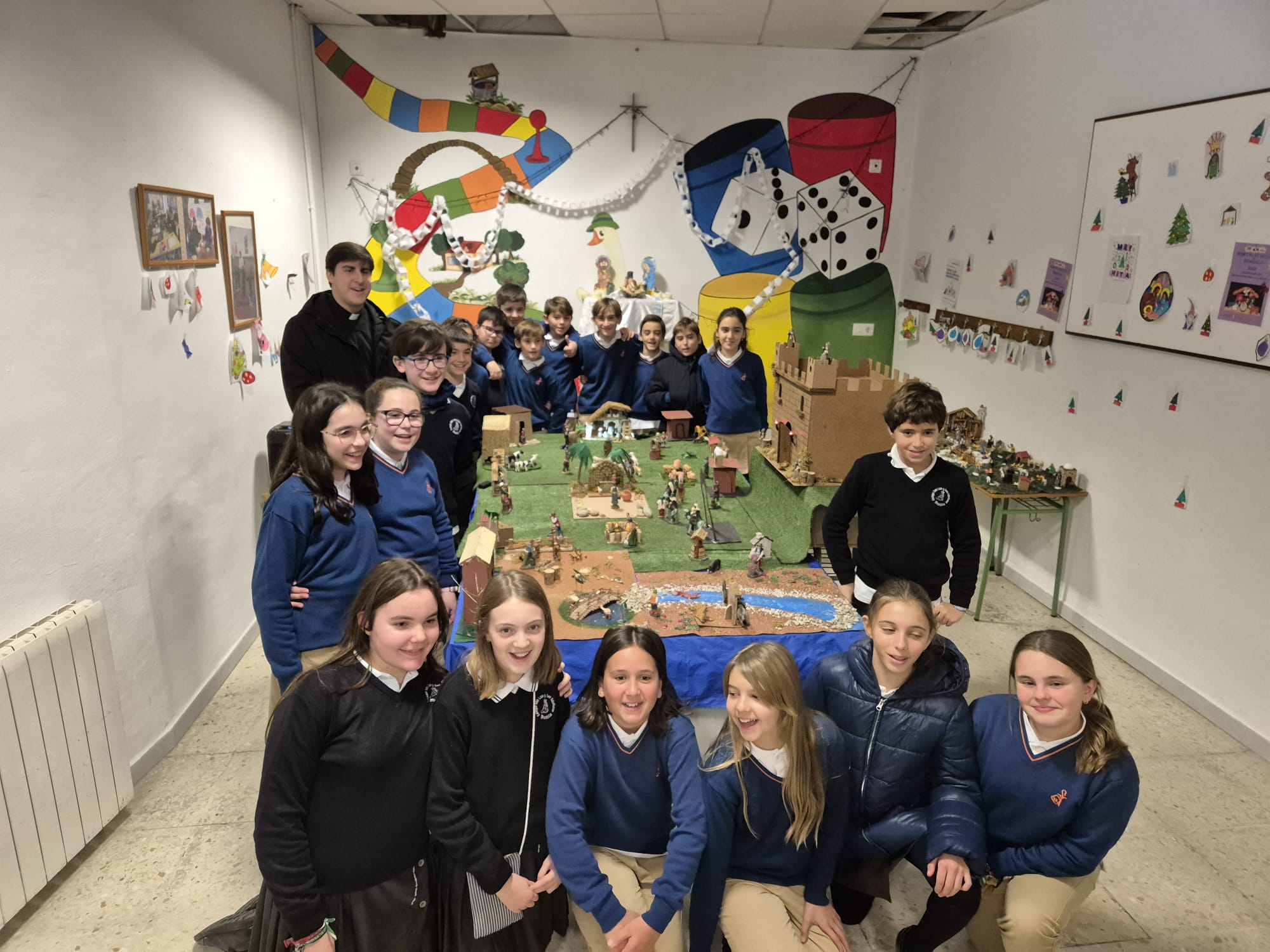 La ilusión desbordaba al alumnado de 6.º de Primaria del Colegio San Luis cuando, a la hora del recreo, abrían las puertas de un Belén, totalmente artesanal, que llevan semanas preparando.