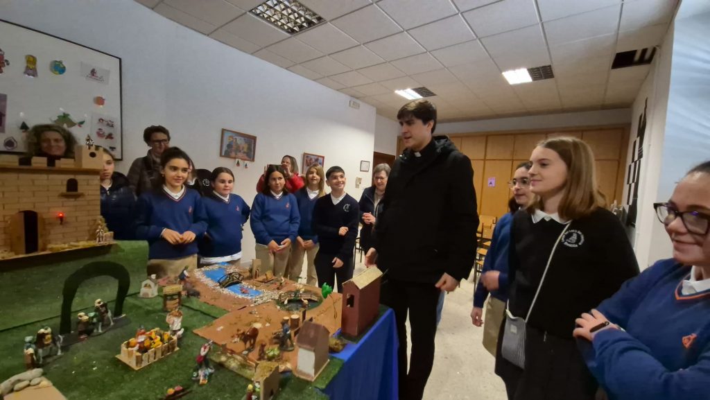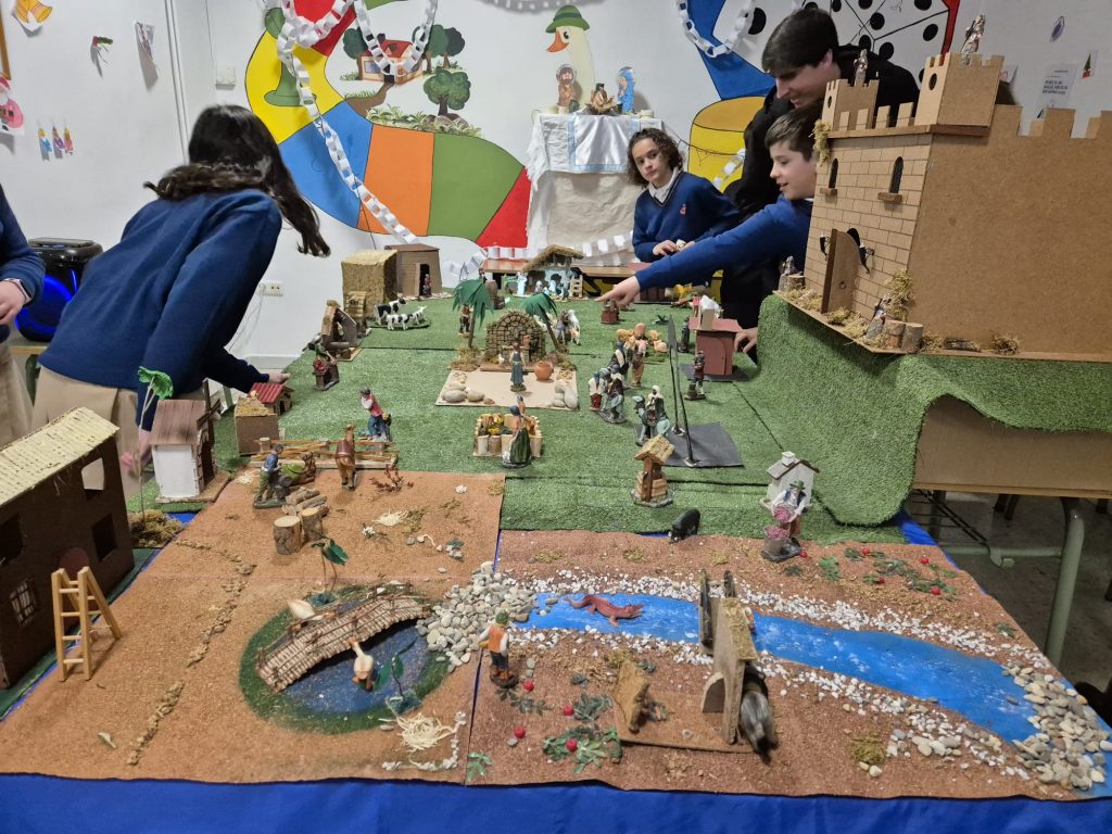 Tras la bendición, los protagonistas fueron los propios alumnos, que guiaron a los asistentes por el Belén explicando los detalles del montaje: caminos, casas, escenas y figuras realizadas completamente a mano. “Lo importante es que lo hemos hecho en grupo y felices”, señalaban orgullosos. Otros añadían: “Cada parte lleva su trabajo, pero lo hemos hecho con mucha ilusión”.