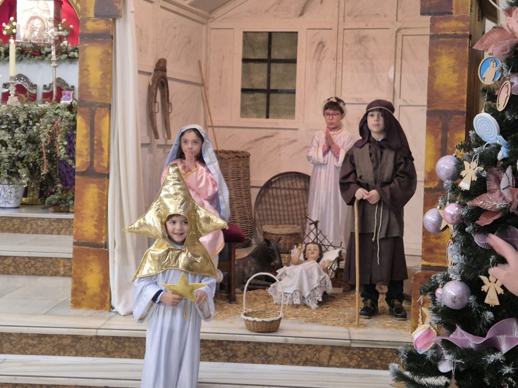 Durante la representación se recrearon escenas como la Anunciación, el Empadronamiento, la búsqueda de Posada, el Nacimiento de Jesús, la Adoración de los Pastores y la llegada de los Reyes Magos, conformando un bello y completo Belén que llenó por completo el Santuario.