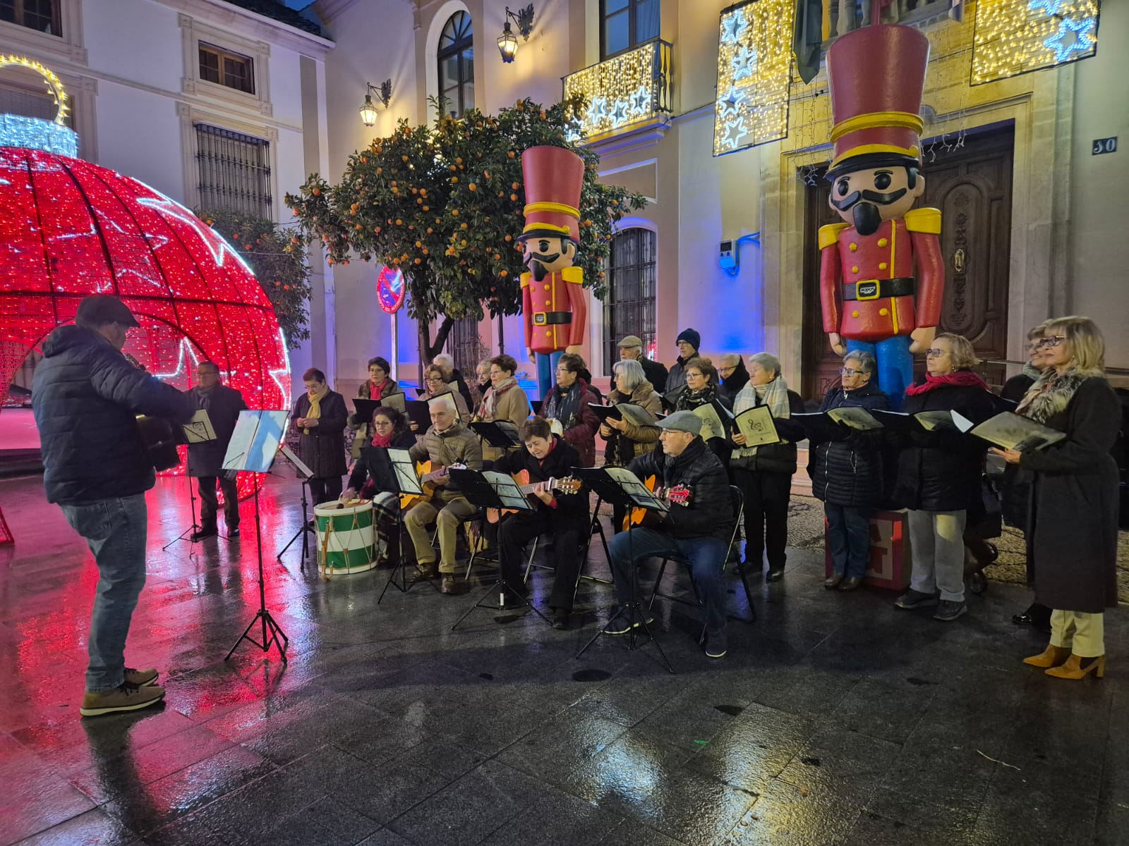 Bajo el título “Montilla canta a la Navidad”, el acto contó con la participación de dos coros montillanos: El coro “Nunca es Tarde”, dirigido por Laura Navarro, que interpretó villancicos tradicionales en la zona de la Corredera, junto a la calle Herradores, y el coro “La Tradición” que bajo la dirección de Darío Jordano, ofreció sus cantos en la puerta del Ayuntamiento, congregando a numerosos vecinos y visitantes.
