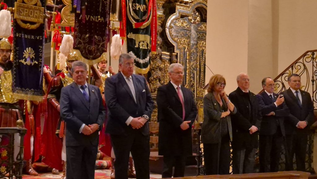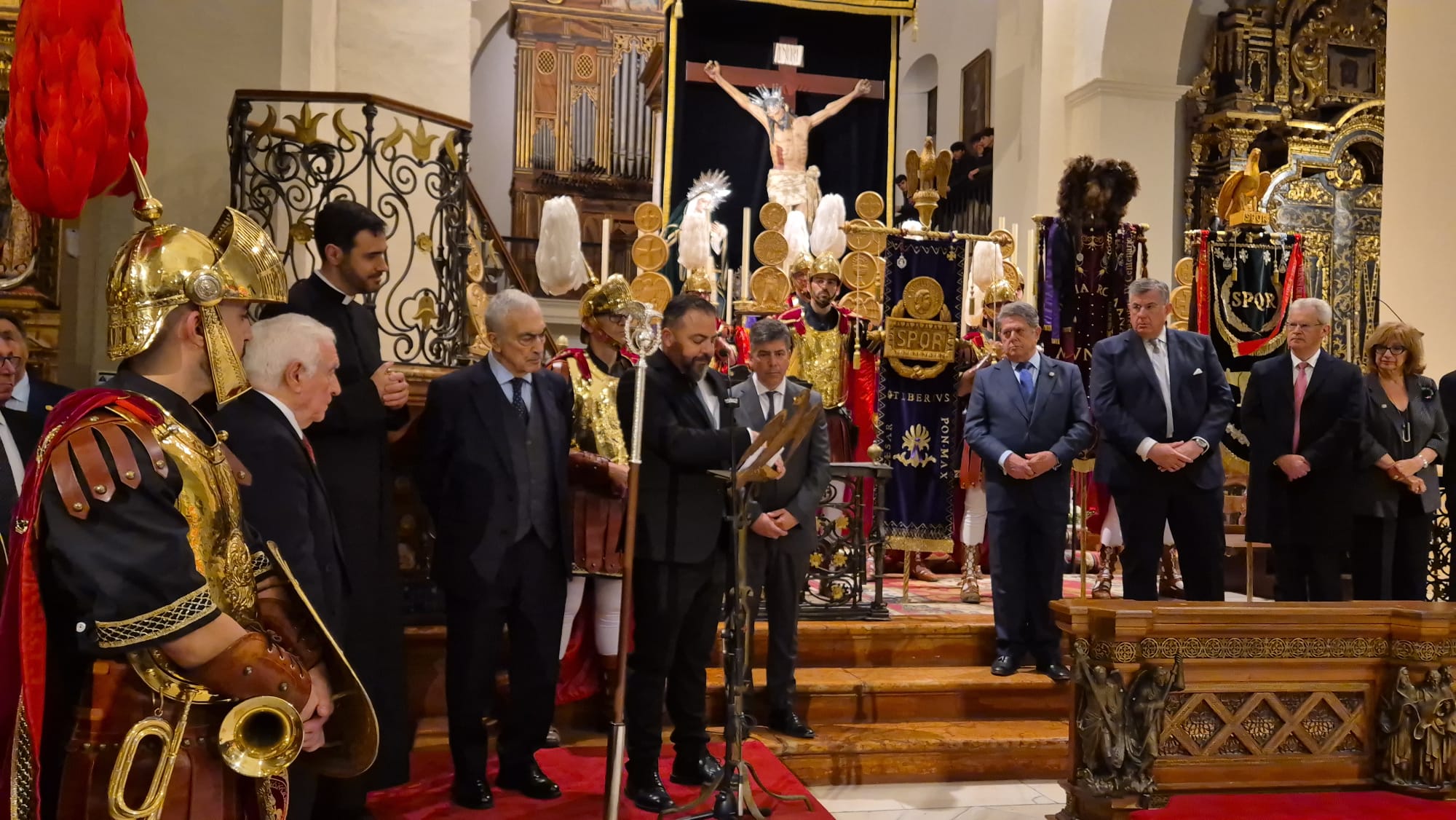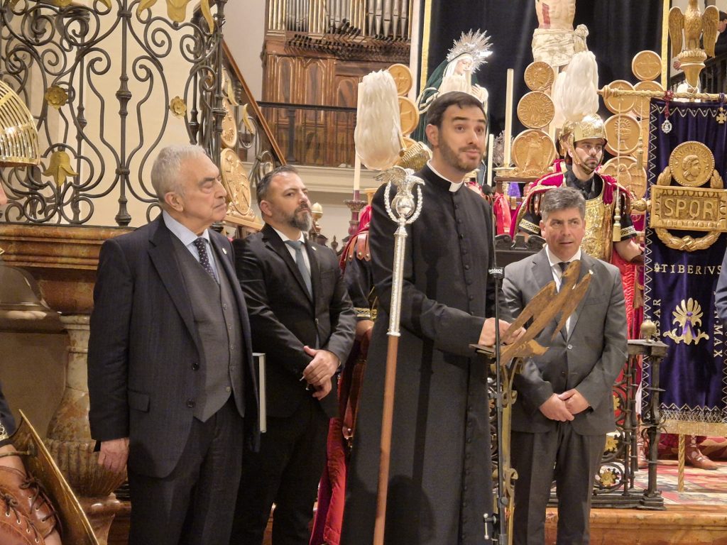 En este primer acto intervino el jurista Francisco Criado, coordinador de la Sentencia, quien destacó la relevancia de esta tradición al señalar que “este es el acto que más nos significa como romanos y el más trascendente, ya que viene a dar sentido de una manera explícita y coherente con la historia al imprescindible protagonismo que los romanos tuvieron en la muerte de Cristo”.