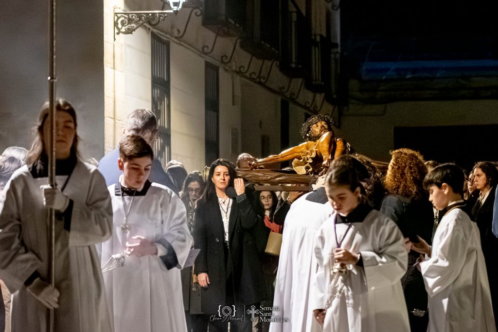 Numerosos fieles y cofrades acompañaron el rezo del viacrucis en un ambiente de recogimiento y solemnidad. Previamente se celebró una eucaristía en la capilla de Nuestro Padre Jesús Nazareno, desde donde partió el cortejo por distintas calles del barrio de San Agustín. La imagen fue portada por sus costaleras y hermanas, dejando momentos de especial emoción.