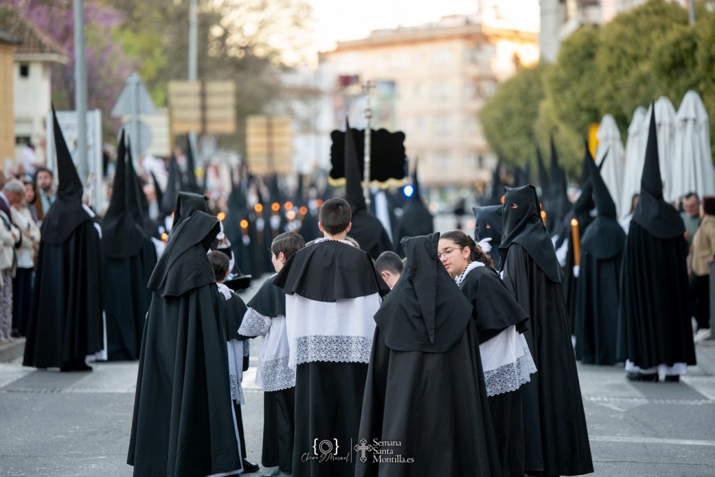 La tarde del Viernes Santo dejó en Montilla una de esas estampas que quedan grabadas en la memoria. La Hermandad del Sagrado Descendimiento protagonizó una estación de penitencia marcada por el recogimiento y la belleza de un misterio que no deja a nadie indiferente.