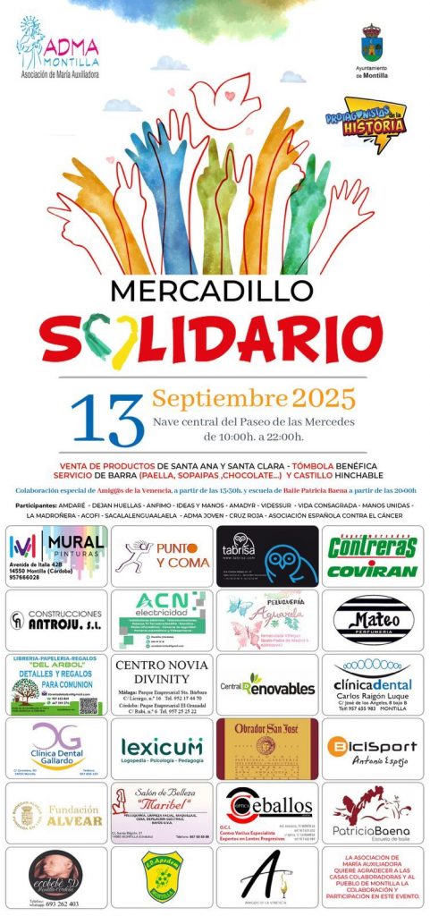 El próximo 13 de septiembre, el Paseo de las Mercedes acogerá una jornada solidaria llena de actividades, actuaciones y propuestas para toda la familia. La actividad, organizado por la Asociación de María Auxiliadora (ADMA), contará con la participación de 13 colectivos sociales y la participación de la Asociación “Amigos de la Venencia” y el grupo de baile de Patricia Baena.