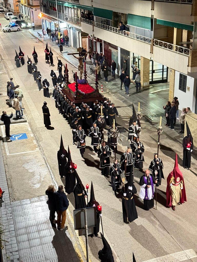 A las 11:00 de la noche, las campanas de la Parroquia de Nuestra Señora de la Asunción anunciaron el inicio del recorrido. La imagen del Cristo del Amor dejaba el templo tras once días de veneración en el barrio del Gran Capitán, en una noche que quedará grabada en la memoria de los montillanos.