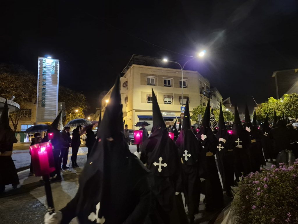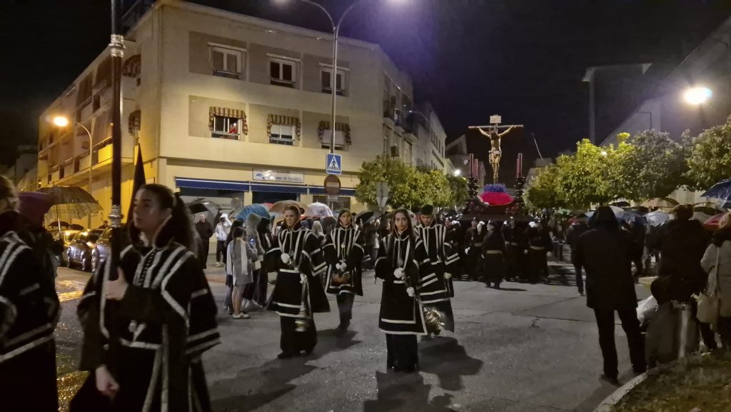 El barrio de las Casas Nuevas vivió una jornada histórica al acoger, de manera extraordinaria, la salida del Cristo del Amor. La imagen hizo estación de penitencia desde esta emblemática barriada, acompañada de una lluvia fina y persistente que marcó gran parte del recorrido.