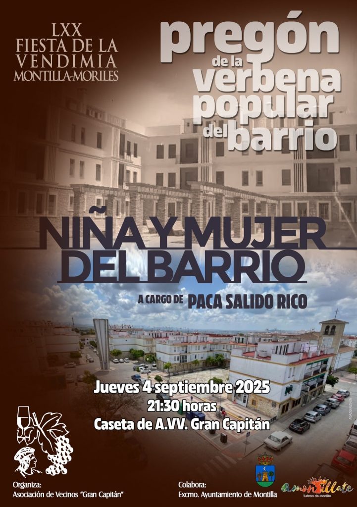 La barriada del Gran Capitán da el pistoletazo de salida a la fiesta de la vendimia con su ya tradicional verbena popular y, como cada año, lo hace con un acto muy especial: el pregón del barrio que marca el inicio de unos días de convivencia, recuerdos y celebración vecinal.