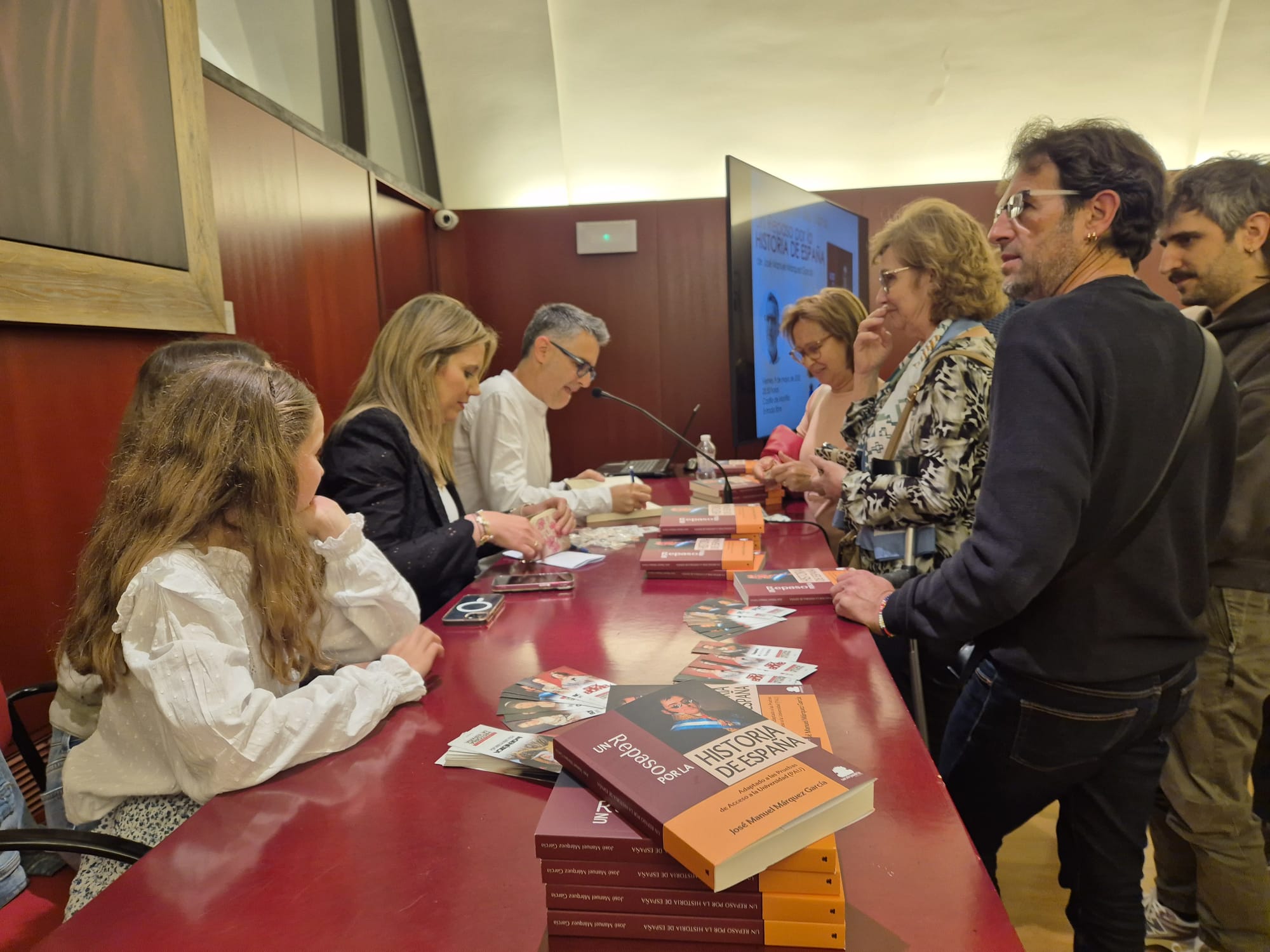 La obra, editada por Sar Alejandría, ofrece un recorrido didáctico y riguroso por la historia de España, desde la Prehistoria hasta la actualidad. Según explicó el autor durante su intervención, la idea del libro surgió de forma inesperada cuando, en noviembre, fue contactado por la editorial a través de Instagram, interesados por el contenido que Márquez compartía en redes sobre historia y educación.