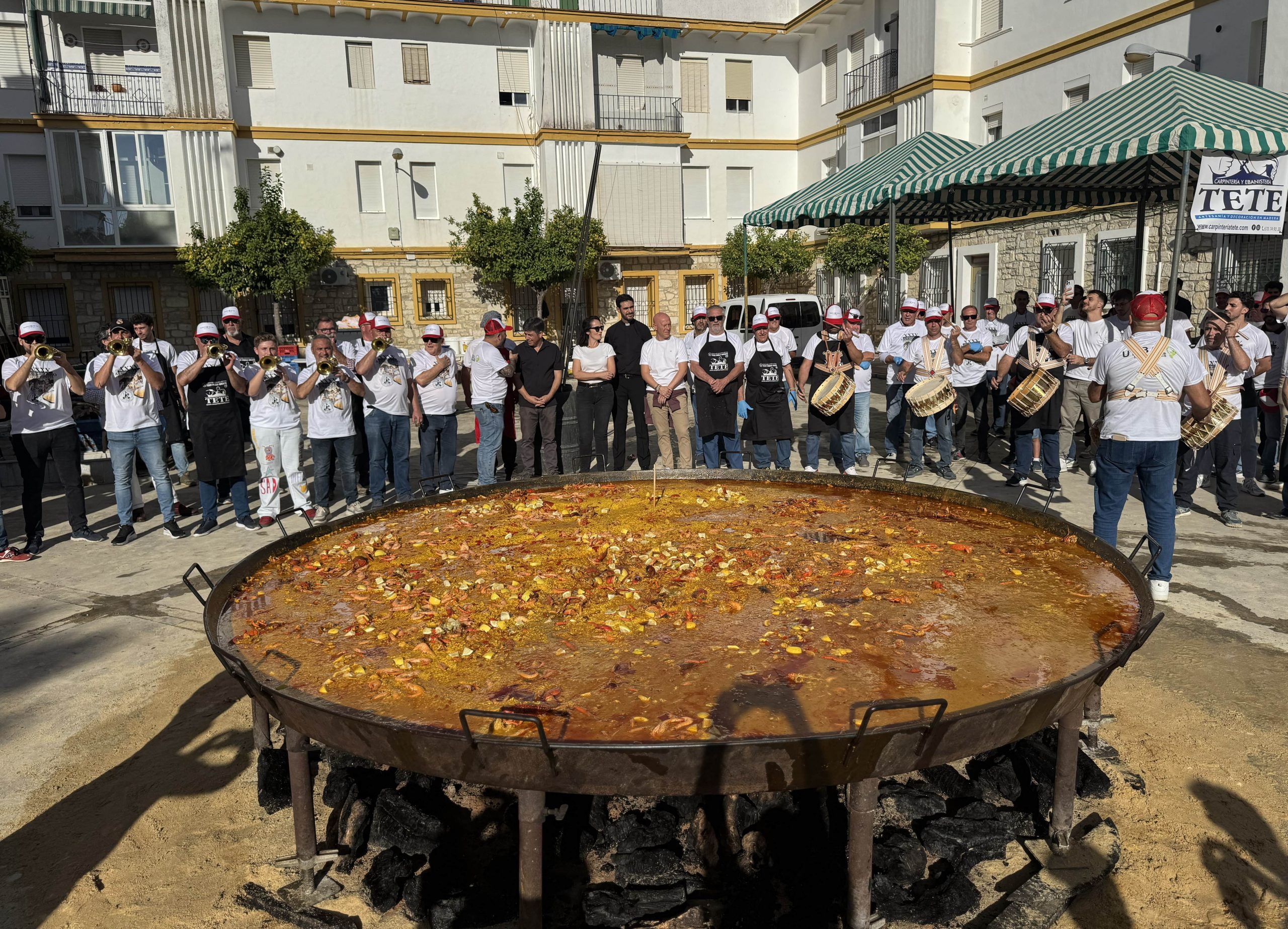 En declaraciones a “Nuestra Voz”, Antonio Salido ha contado que los preparativos comienzan con una semana de antelación, y que este año, al tratarse del 35 aniversario, se ha querido preparar una paella “especial”: “La hemos preparado con 350 kilos de arroz, 170 kilos de carne, 30 kilos de bogavante, 20 kilos de langostinos, 50 litros de vino fino, 20 de aceite, 30 kilos de ajo, 50 de pimiento y 40 de tomate. El color que tiene y el aroma… creo que está saliendo una paella de lujo.”