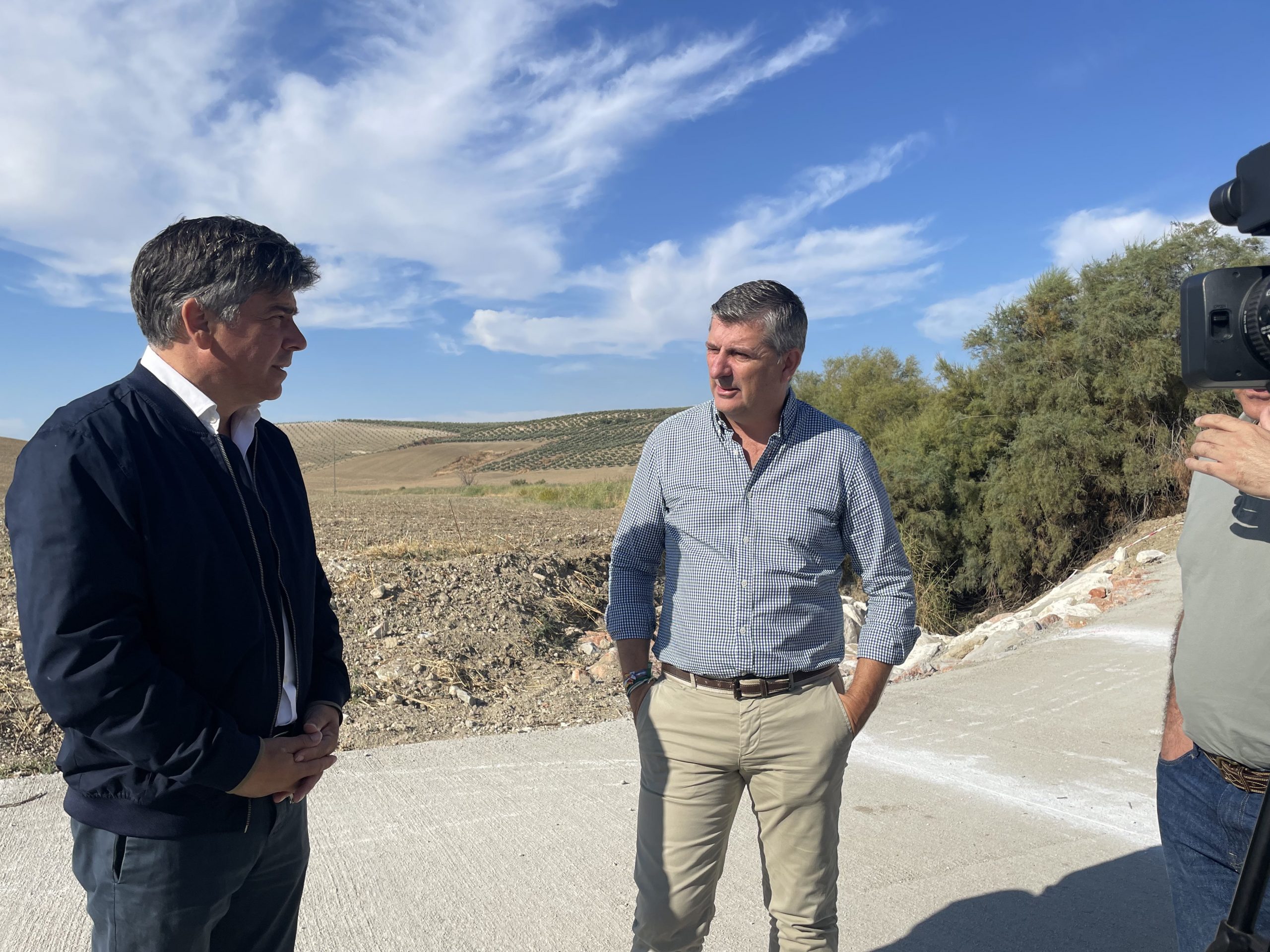 El delegado territorial de Agricultura y Desarrollo Rural de la Junta de Andalucía, Francisco Acosta junto al alcalde de Montilla,Rafael Llamas, ha visitado este lunes las obras de mejora realizadas en los caminos rurales de La Zarza y Pleito de los Molinos, dos de las vías más afectadas por las intensas lluvias registradas en los meses de febrero, marzo y abril.