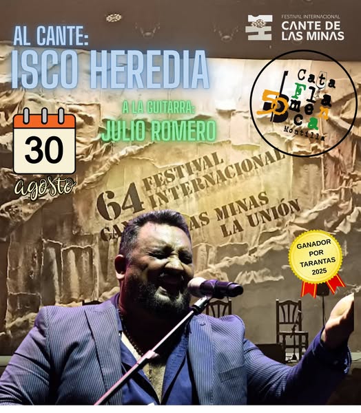 Esta edición tan especial contará también con la colaboración del Festival Internacional del Cante de las Minas de La Unión (Murcia), que tras hacer entrega a la Peña El Lucero del galardón “Rojo el Alpargatero” traerá hasta Montilla las actuaciones del cantaor Isco Heredia y el guitarrista Julio Romero, como muestra del hermanamiento entre ambos festivales.