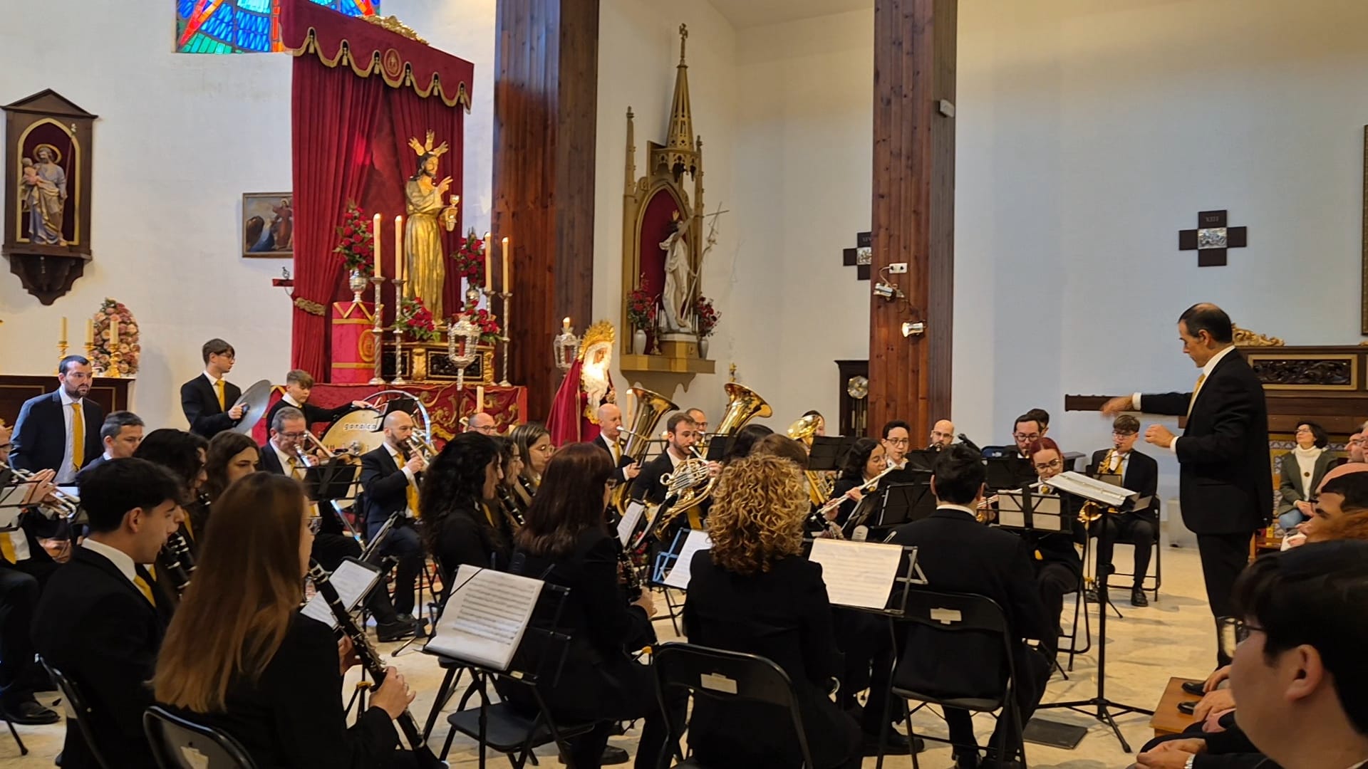 La Banda de Música Pascual Marquina celebró su tradicional Concierto de Semana Santa el pasado domingo en la Parroquia de Nuestra Señora de la Asunción, congregando a un público entregado que llenó completamente el templo. A los pies del Señor en la Santa Cena y de María Santísima de la Estrella, la banda ofreció un programa que puso de relieve su calidad musical y su pasión por la música cofrade.