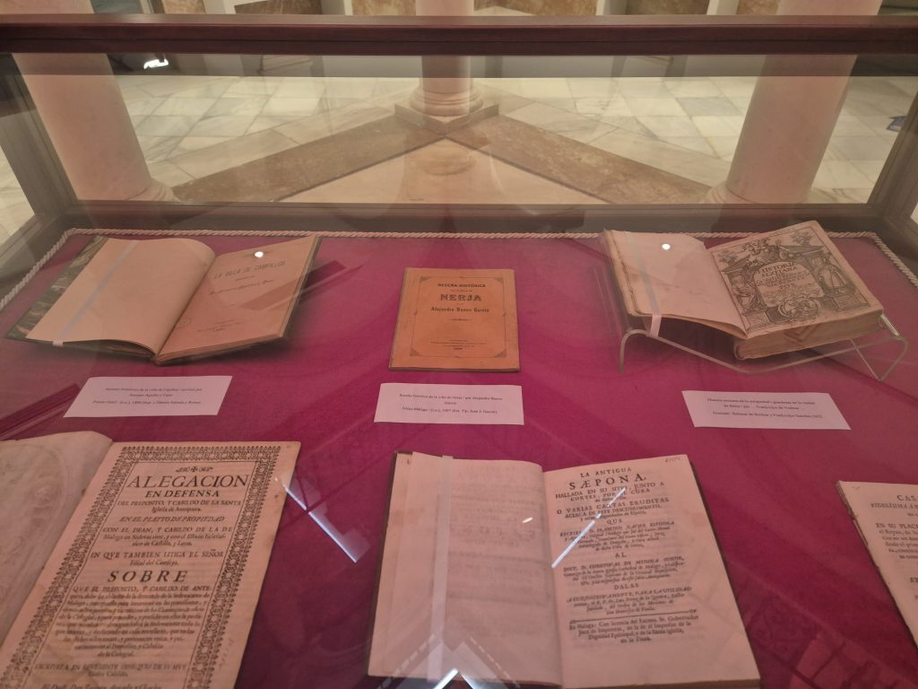 La historia de Ronda adquiere un protagonismo especial en esta muestra, con ejemplares como las Ordenanzas de la Real Maestranza de Caballería Ciudad de Ronda (1817) y La Munda de los romanos y su concordancia con la ciudad de Ronda, de Rafael Atienza y Huertos. Junto a ellas, un representativo conjunto de obras permite recorrer los inicios historiográficos de municipios como Vélez Málaga, Antequera, Campillos, Nerja o Casares.