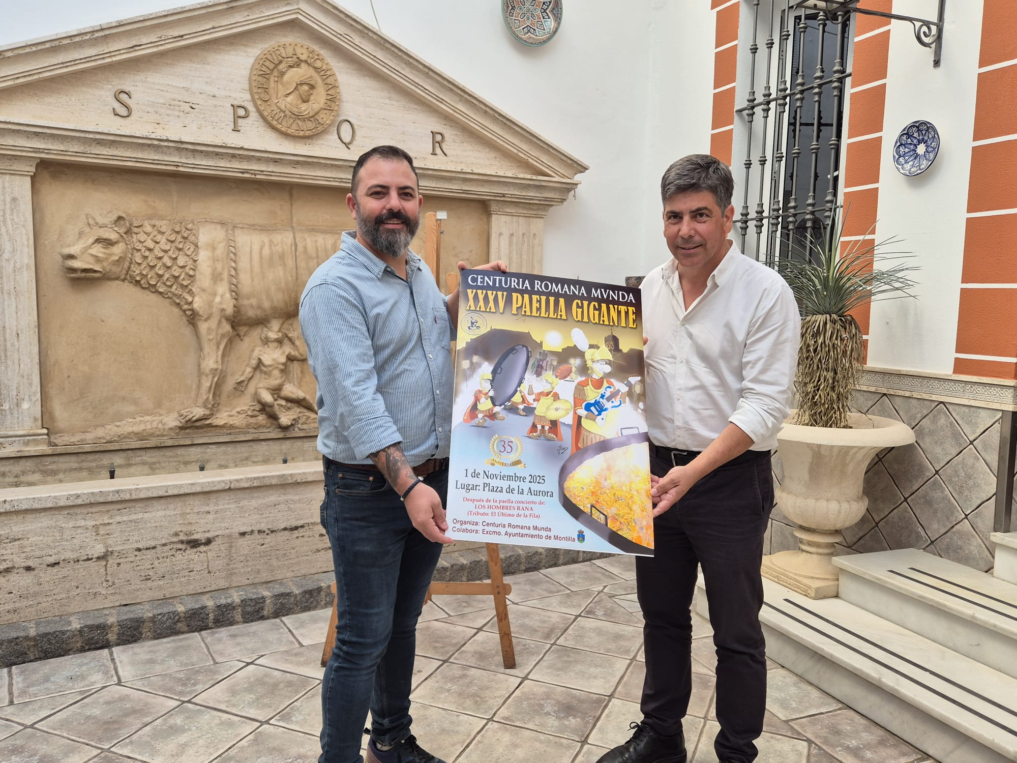 La tradicional Paella Gigante, organizada por la Centuria Romana Munda cada 1 de noviembre, festividad de Todos los Santos, celebra este año su 35º aniversario con una edición muy especial. Así lo han anunciado el presidente de la asociación, Rafael Cabello, y el alcalde de Montilla, Rafael Llamas.