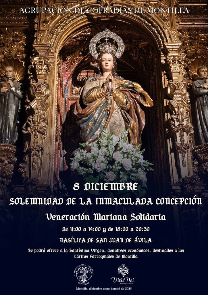 Por cuarto año consecutivo, la Parroquia de Santiago Apóstol de Montilla junto a la Agrupación de Cofradías, organiza la procesión solemne de la Inmaculada Concepción,