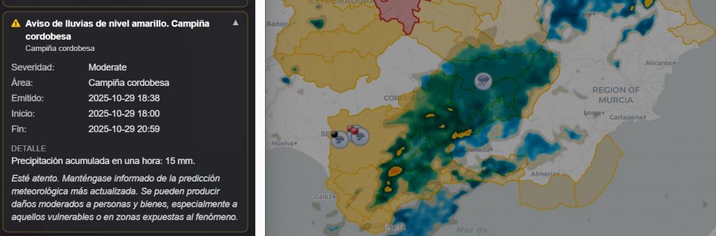 La Agencia Estatal de Meteorología (AEMET) mantiene activado el aviso amarillo hasta las 23:59 horas en la provincia de Córdoba.
