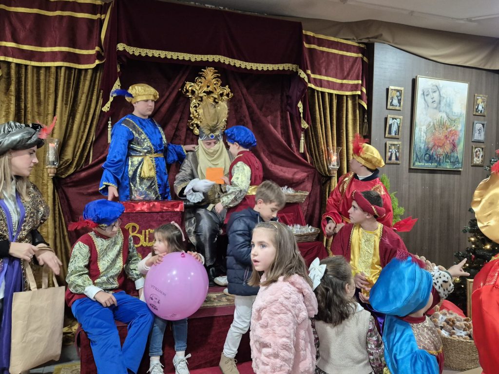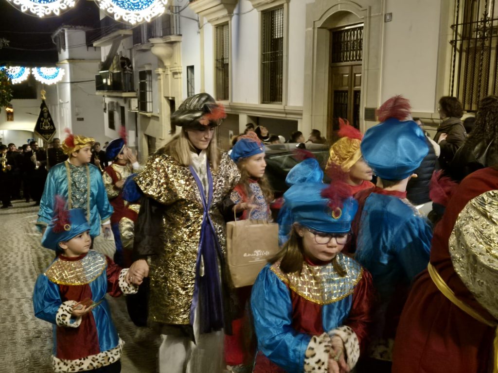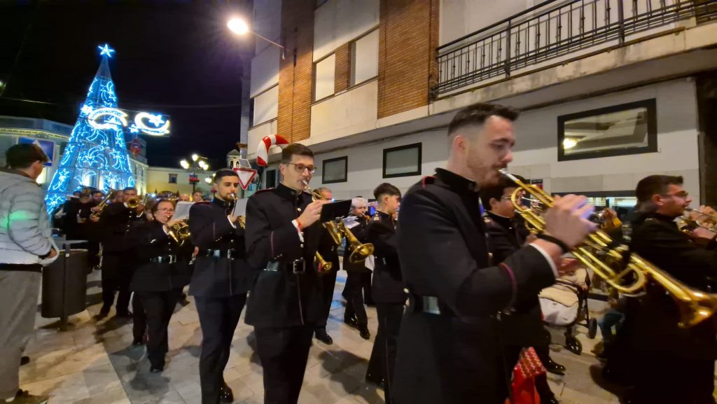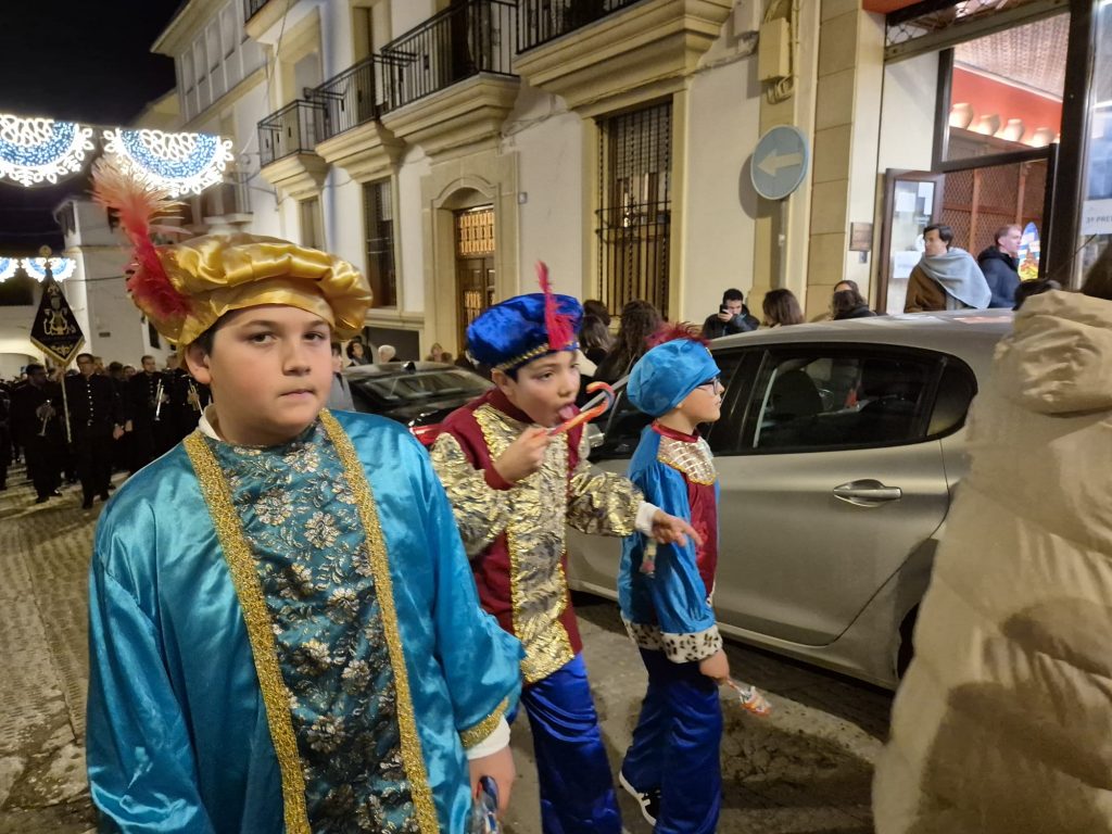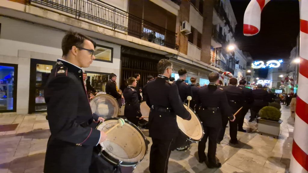 A lo largo del recorrido, ambas formaciones interpretaron villancicos, creando un magnífico ambiente festivo y llevando alegría a los más pequeños, acompañados por el Heraldo Real de la Hermandad de la Juventud y numerosos pajes, que repartieron ilusión y pequeños regalos entre el público.
