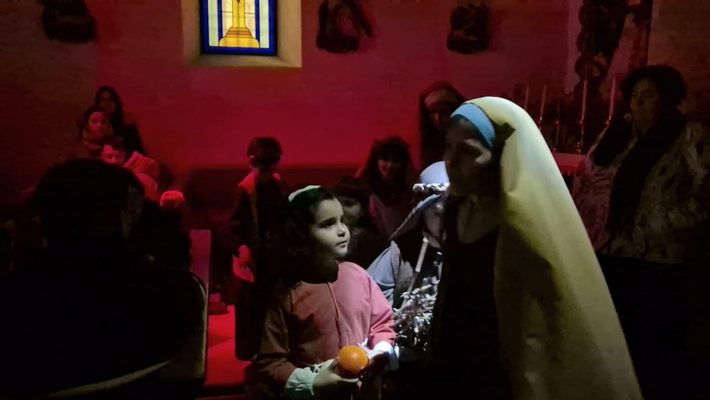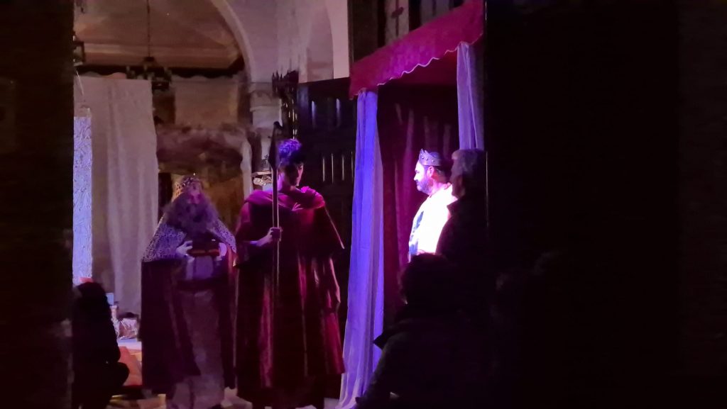 El público llenó la parroquia para disfrutar de una representación poco conocida y que merece la pena ser disfrutada por su calidad y realismo. La escenificación comenzó con la Anunciación, continuó con el Sueño de San José y el Camino hacia Belén, para dar paso al Nacimiento, la Adoración de los Pastores, el encuentro de los Reyes con Herodes y finalizó con la Adoración de los Reyes Magos.
