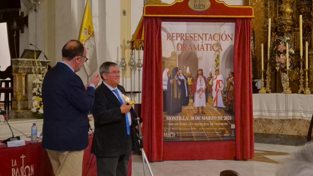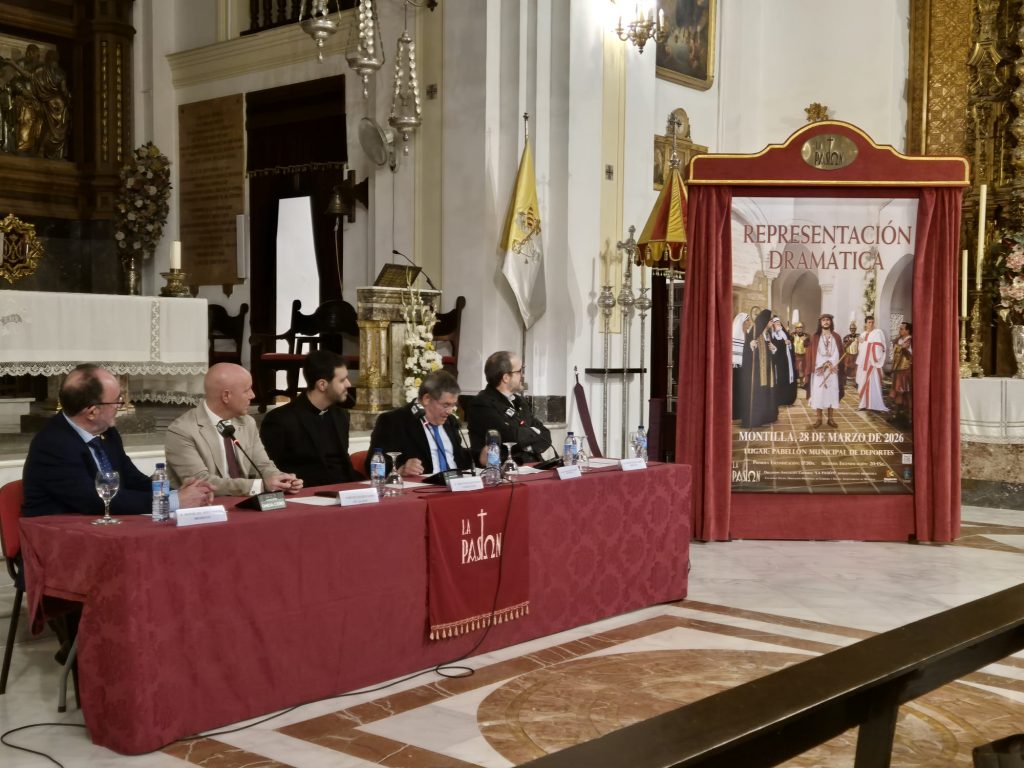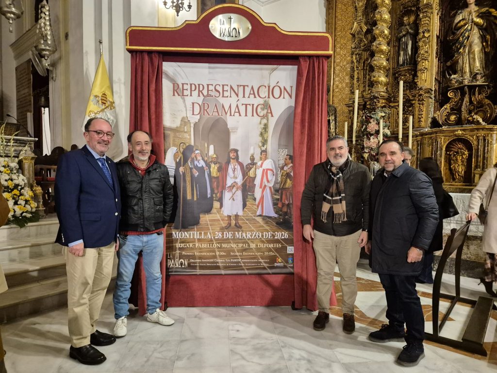 El cartel anunciador es obra de los fotógrafos Chema Garrido Mármol y Manuel Herrador y reproduce la escena de la Presentación de Jesús al Pueblo. A diferencia de otras ocasiones, la imagen no procede directamente de la representación, sino que ha sido recreada expresamente en el patio del pretorio del Convento de Santa Clara, un enclave de gran belleza que aporta fuerza estética y solemnidad a la composición. La imagen adelanta uno de los momentos más impactantes que se vivirán el sábado de Pasión, 28 de marzo, a las 17:30 y 20:45 horas, dentro del grandioso y espectacular montaje de La Pasión de Montilla.