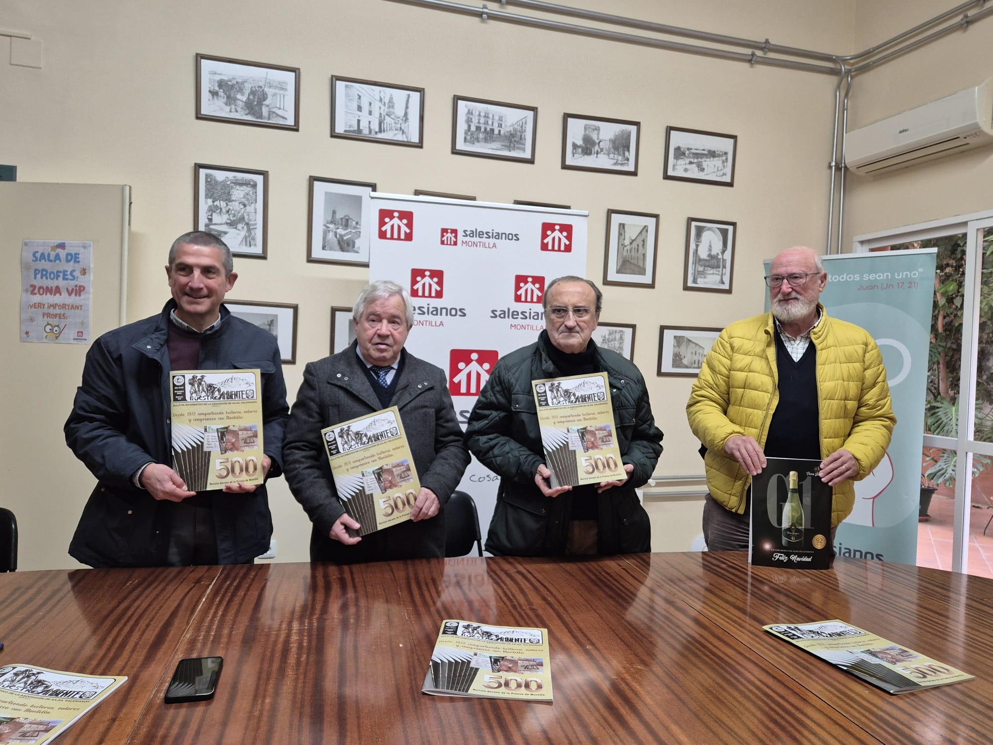 La revista Nuestro Ambiente de la Asociación de Antiguos Alumnos de Don Bosco, ha alcanzado un hito histórico con la publicación de su número 500, una cifra que consolida a esta cabecera como una de las publicaciones más longevas y representativas de la historia reciente de Montilla. El acontecimiento fue presentado en rueda de prensa con la participación de José Antonio Cerezo, director de la revista; Manuel Ruz Feria; Bosco Portero y el director de la Casa Salesiana, Agustín de la Cruz.