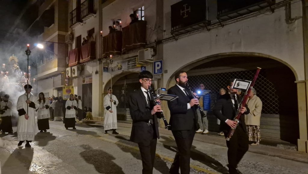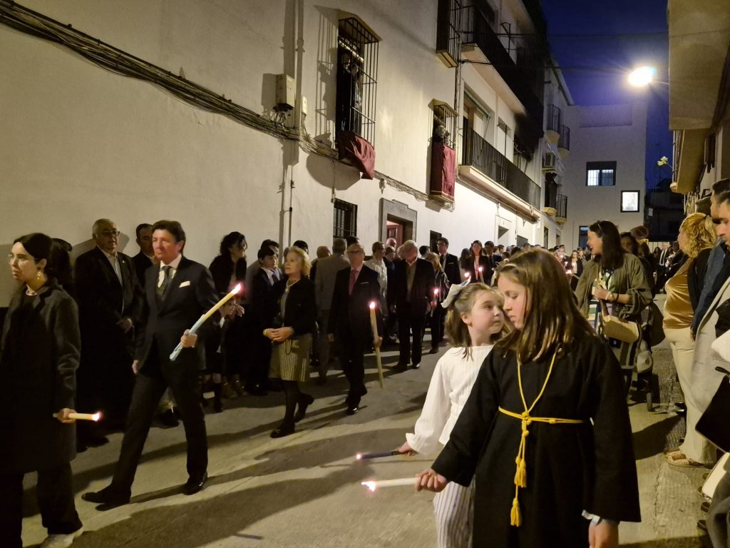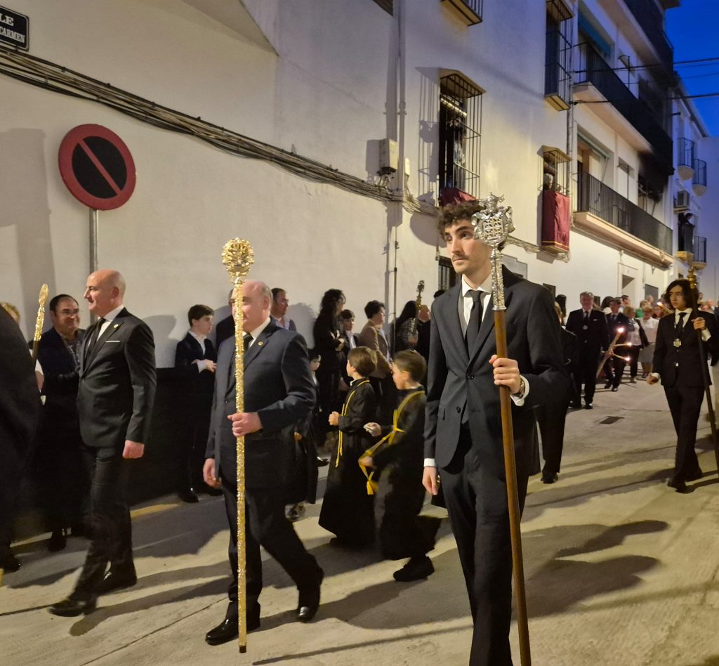 Las calles se colmaron de respeto en una tarde-noche del Viernes Santo, marcada por el entierro del Señor y la presencia solemne de la Virgen de la Soledad.» Durante el recorrido, devotos de todas las edades acompañaron, con devoción, el discurrir solemne del Señor en su Santo Entierro y de María Santísima de la Soledad, iluminando con sus cirios cada paso.