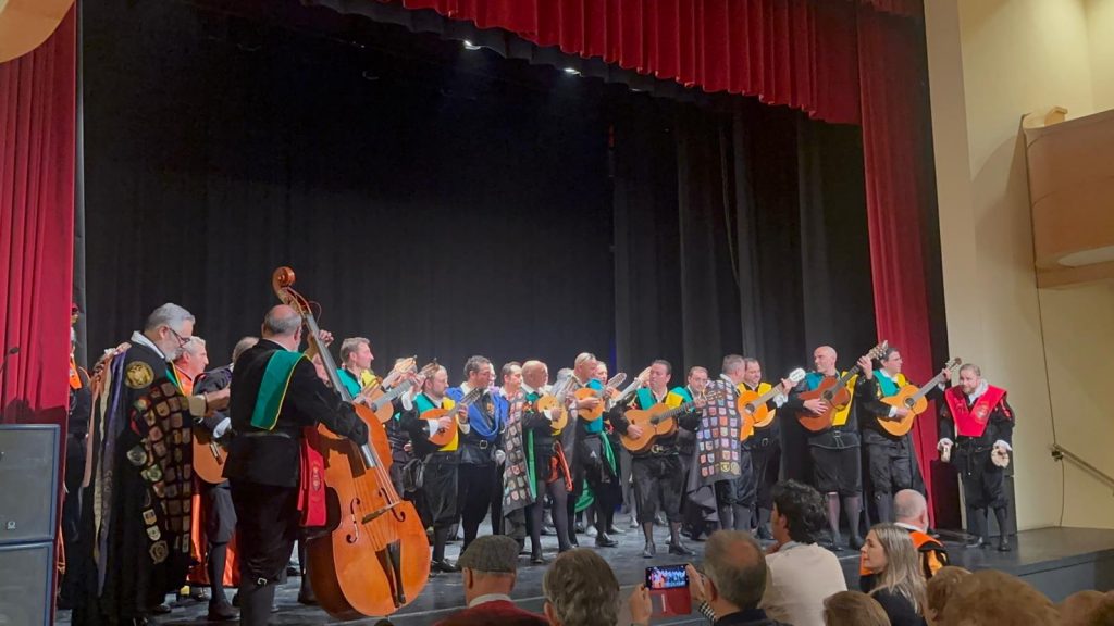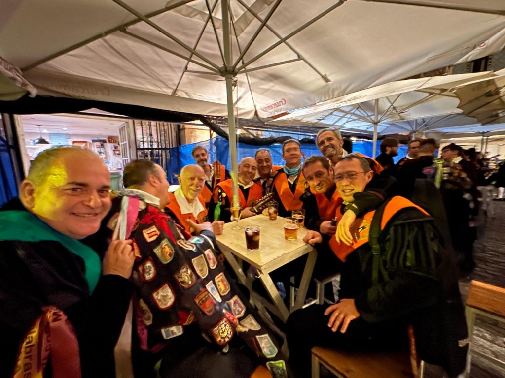 Posteriormente, los tunos se desplazaron a la Planta alta del Mercado de Abastos, donde compartieron una gran paella antes de recorrer tabernas y prepararse para la gran cita en el Teatro.