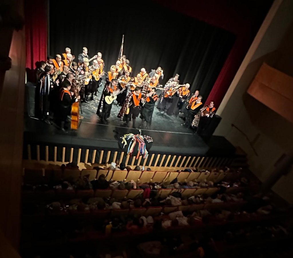 Como broche final, todas las tunas subieron juntas al escenario mientras el público se levantaba en pie, en uno de los momentos más emotivos de la noche.
