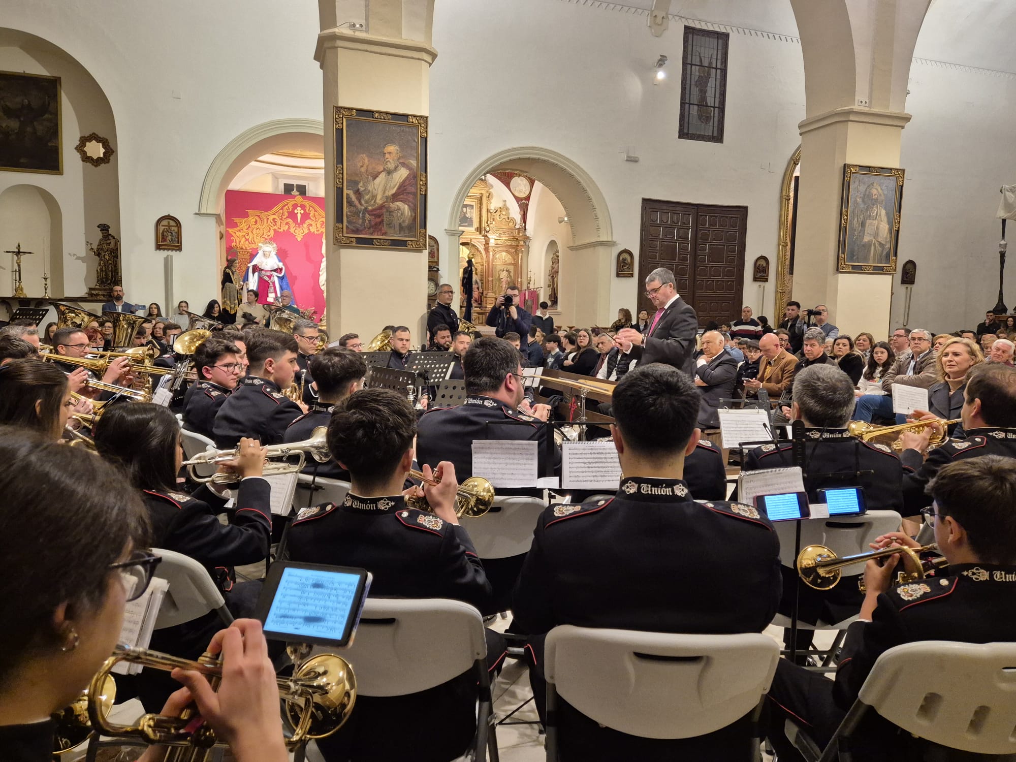 La Agrupación Musical La Unión de Montilla ha celebrado su 45 aniversario con un gran concierto de Cuaresma en la parroquia de Santiago Apóstol, que volvió a llenarse de público para disfrutar de la calidad musical de una formación que supera ya el centenar de músicos y que está dirigida por Miguel Estepa.