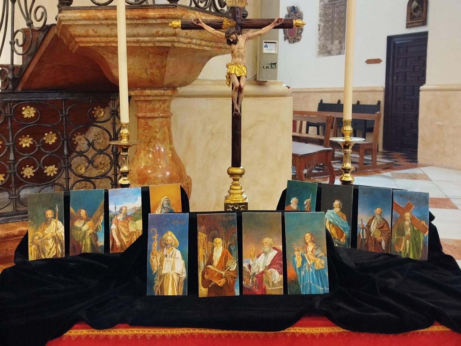 Se trata de doce pinturas del apostolado, inspiradas en las obras de José Garnelo de la Parroquia y realizadas por Inmaculada Navarro, que se incorporarán al paso procesional.
