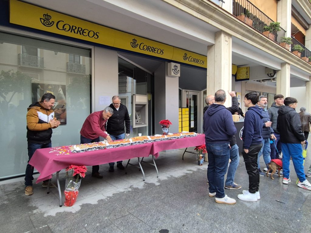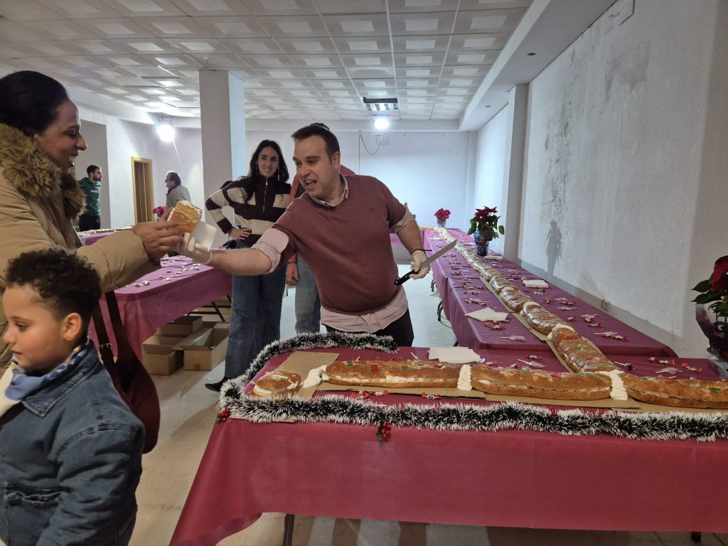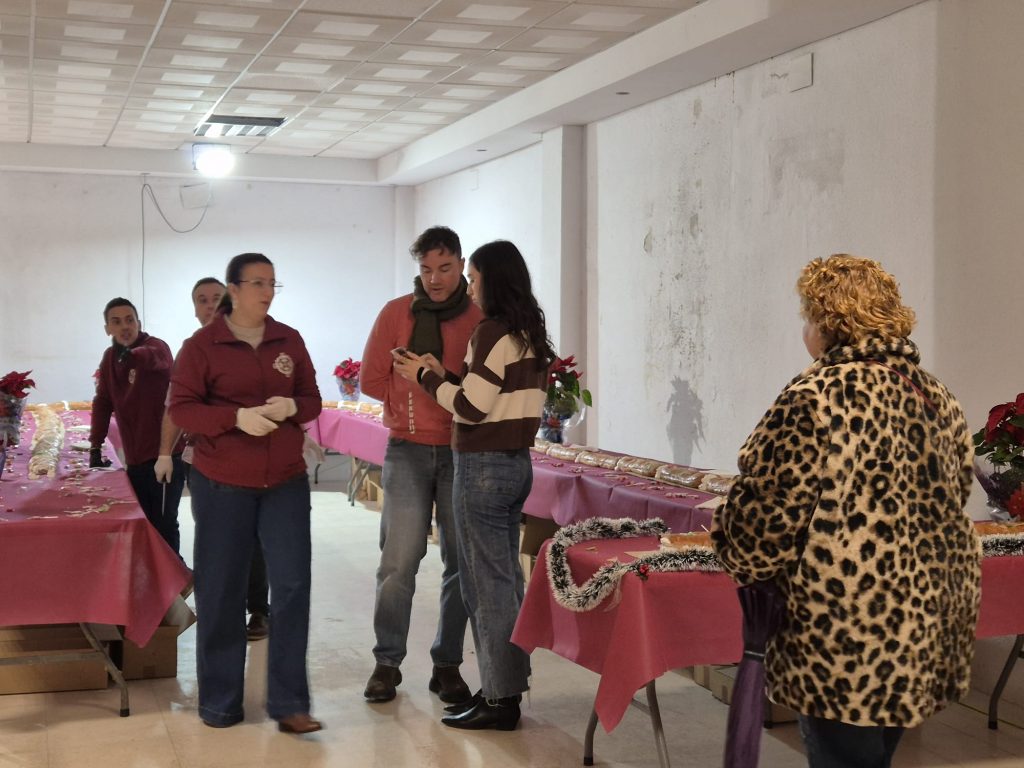 El roscón, elaborado de forma artesanal, supera los 350 metros de longitud, repartidos en más de 165 piezas, y se ha podido degustar acompañado de chocolate caliente. Por la lluvia, la actividad se ha desarrollado en el local frente al Ayuntamiento. Las personas interesadas han podido reservar su Roscón de la Humildad en el teléfono 664 71 87 88.