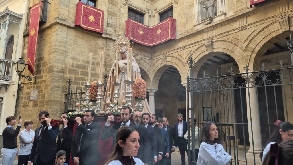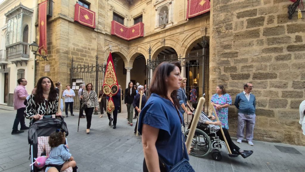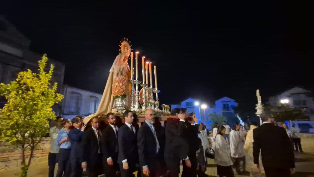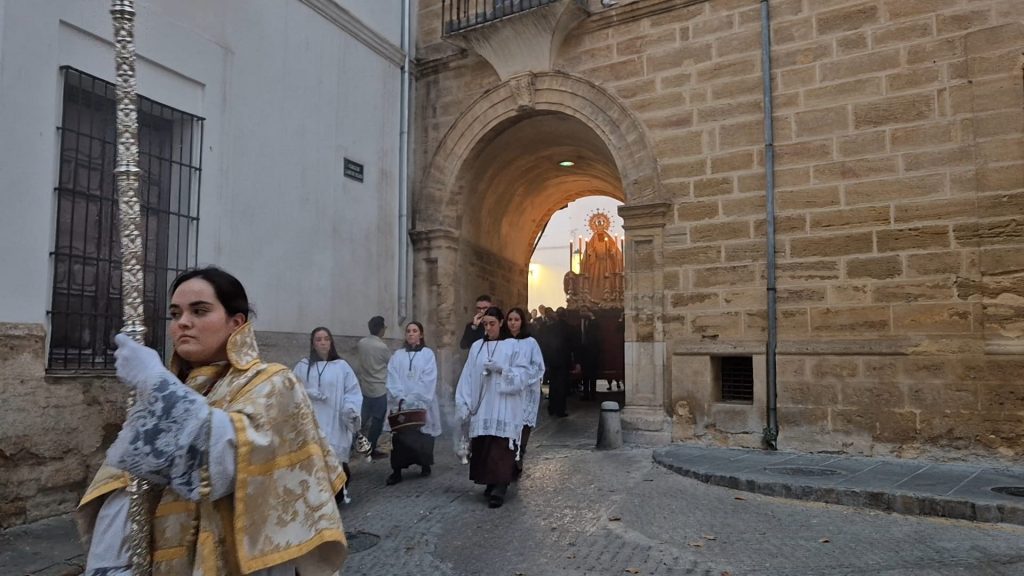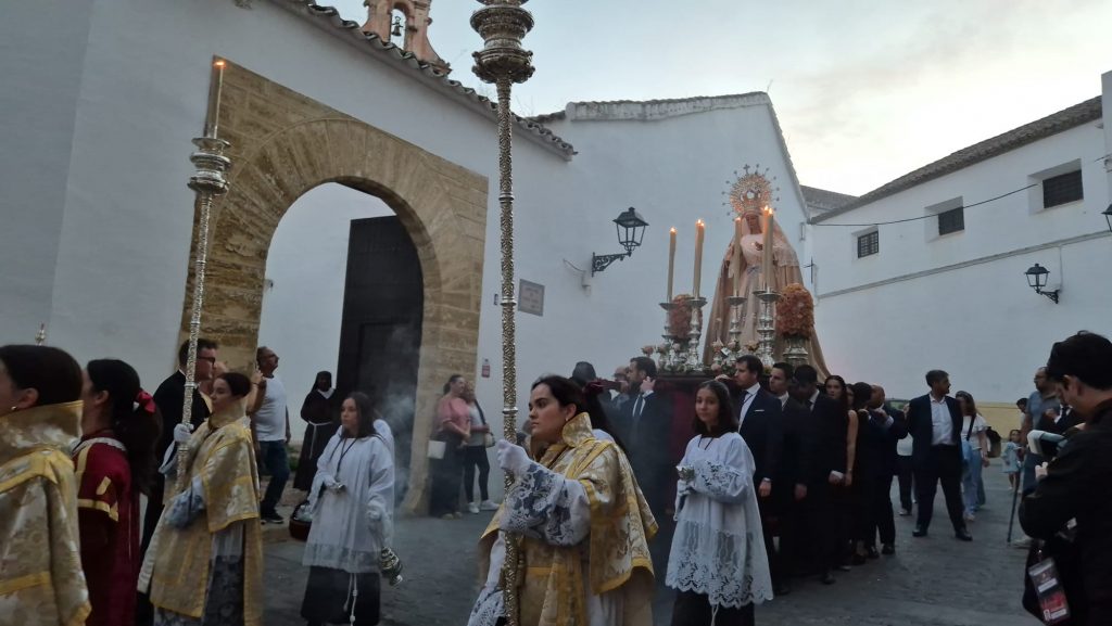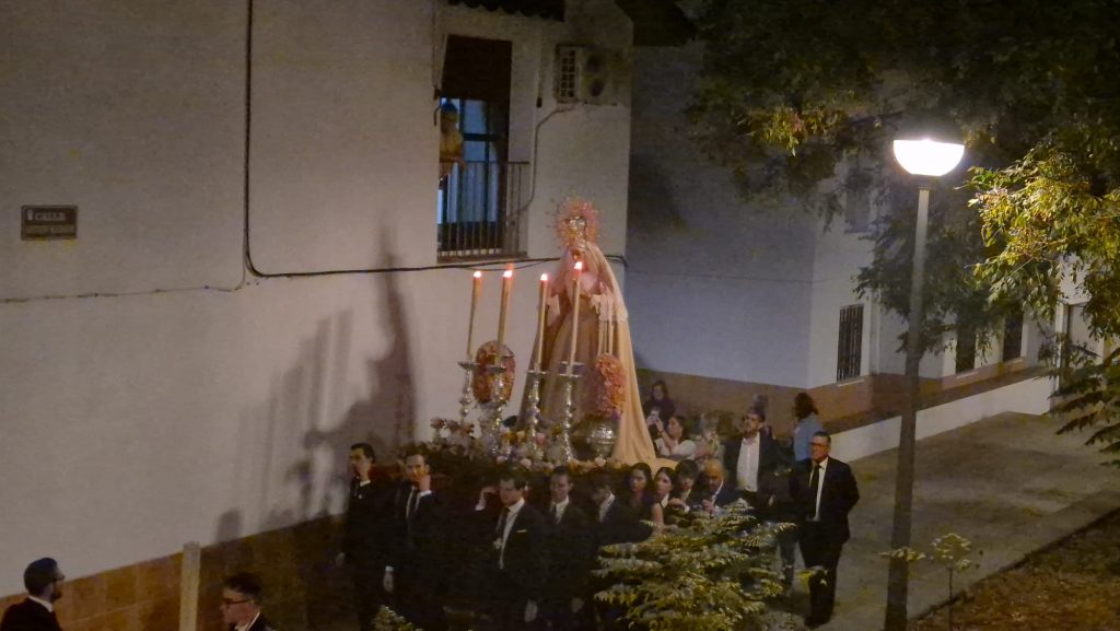 En su recorrido, la virgen ha pasado por el barrio de La Cruz, la Parroquia de San Sebastián —donde recibió una ofrenda—, el Monasterio de Santa Clara donde se detuvo a las puertas y, tras cruzar el arco continuó por avenida de Granada para entrar en la barriada de Pedro Ximénez.