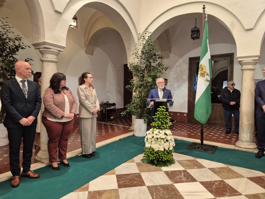 El alcalde, Rafael Llamas, junto a la Corporación Municipal y al recién nombrado Hijo Predilecto, protagonizó el izado de la bandera andaluza mientras la banda interpretaba el Himno de Andalucía, cantado con emoción por el público asistente. A continuación, José Rey, Cronista Oficial de la ciudad, dio lectura al preámbulo del Estatuto de Autonomía para Andalucía, momento en el que se procedió a la entrega oficial del reconocimiento a Paquillo Moreno.