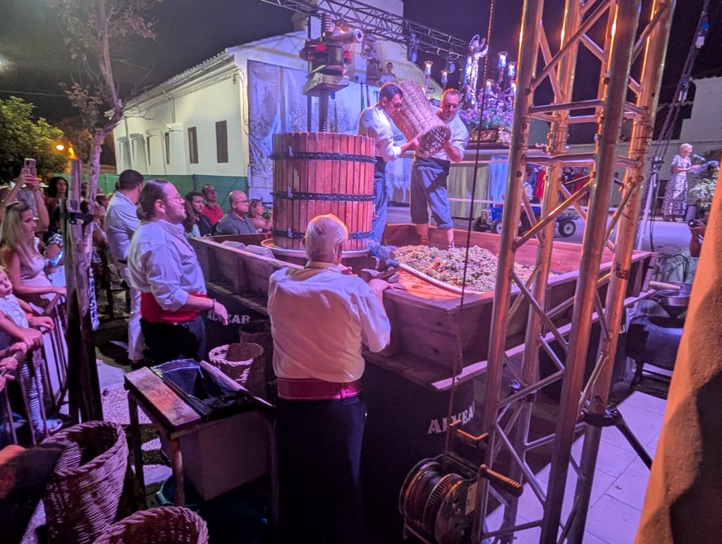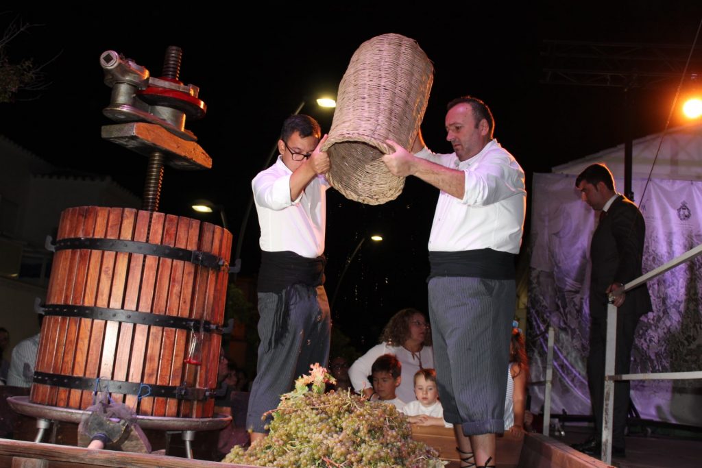 La uva fue portada en cestos de vareta y en canastas por niños, niñas y los vendimiadores mayores y de honor, y depositada en la antigua lagareta instalada en la Plaza de La Merced. Allí, los expertos pisaores Antonio Jesús Ruz Guijarro y Juan Gómez Raya, acompañados por Manuel Contreras y Antonio Manuel Merino, ejecutaron el tradicional baile sobre la uva.