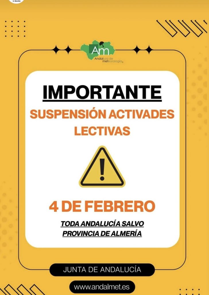 El CECOPAL (Centro de Coordinación Operativa Local) ha adoptado decisiones en coordinación con la suspensión de la actividad lectiva acordada por la Junta de Andalucía y los avisos meteorológicos de nivel amarillo para la comarca