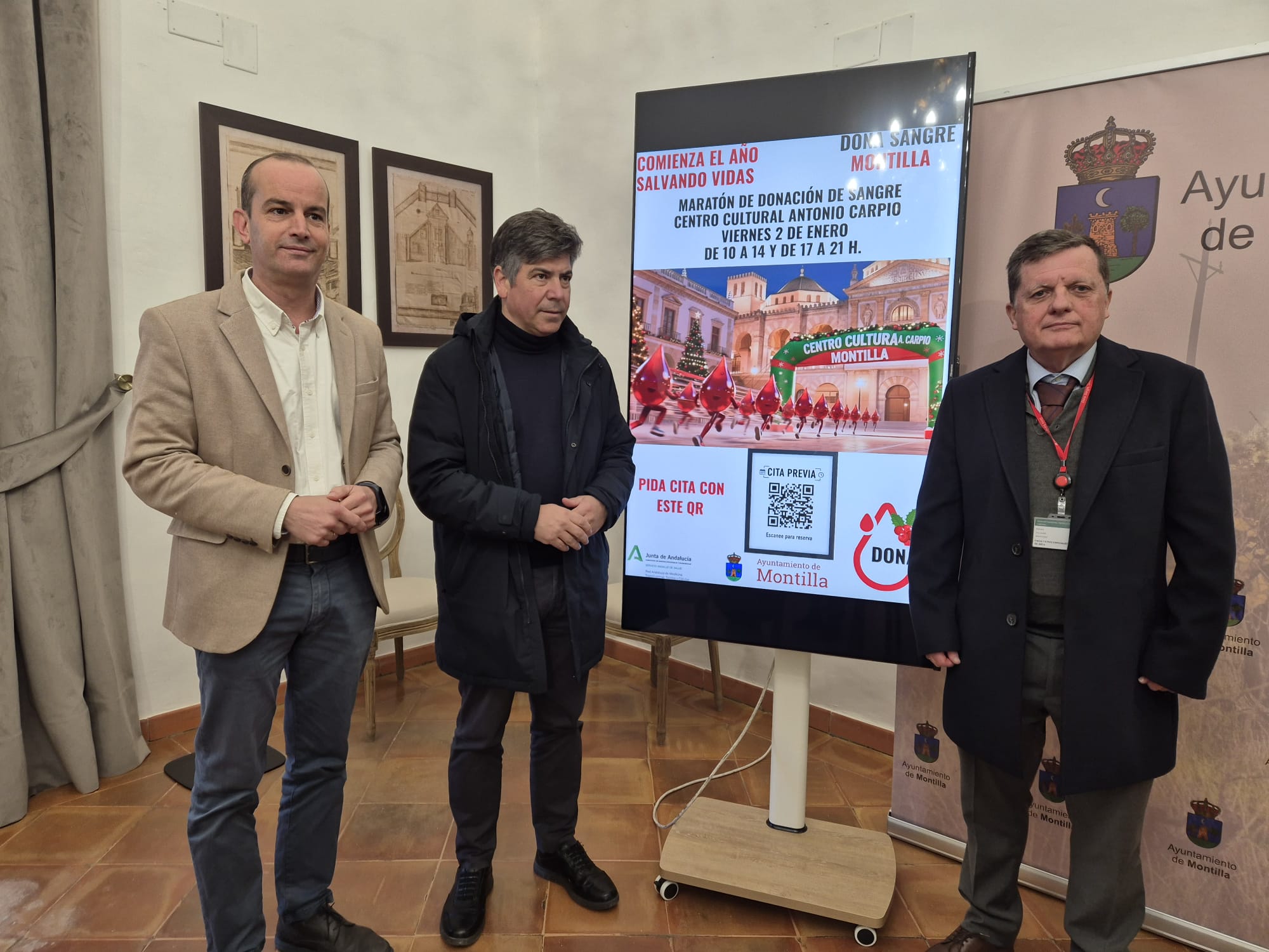 El primer maratón de donación de sangre se ha presentado por el alcalde, Rafael Llamas, el director del Centro de Transfusión Sanguínea de Córdoba, Rafael Villalba, y el teniente de alcalde de participación Ciudadana, Valeriano Rosales, quienes han destacado la importancia de esta convocatoria en unas fechas especialmente sensibles para las reservas de sangre.