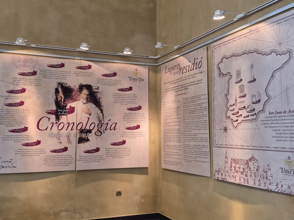 El Ayuntamiento de Montilla y la Basílica de San Juan de Ávila han recuperado la exposición dedicada al Doctor de la Iglesia, que ya fue exhibida en 2019 con motivo del Año Jubilar en el que se conmemoró el 450 aniversario de su fallecimiento y el 125 aniversario de su beatificación. Con esta iniciativa se impulsa de nuevo la Ruta Vitis Dei, acercando a visitantes y peregrinos la figura de San Juan de Ávila, coincidiendo con el nuevo tiempo jubilar concedido a Montilla y a la basílica donde reposan sus restos, con motivo del 500 aniversario de su ordenación sacerdotal.