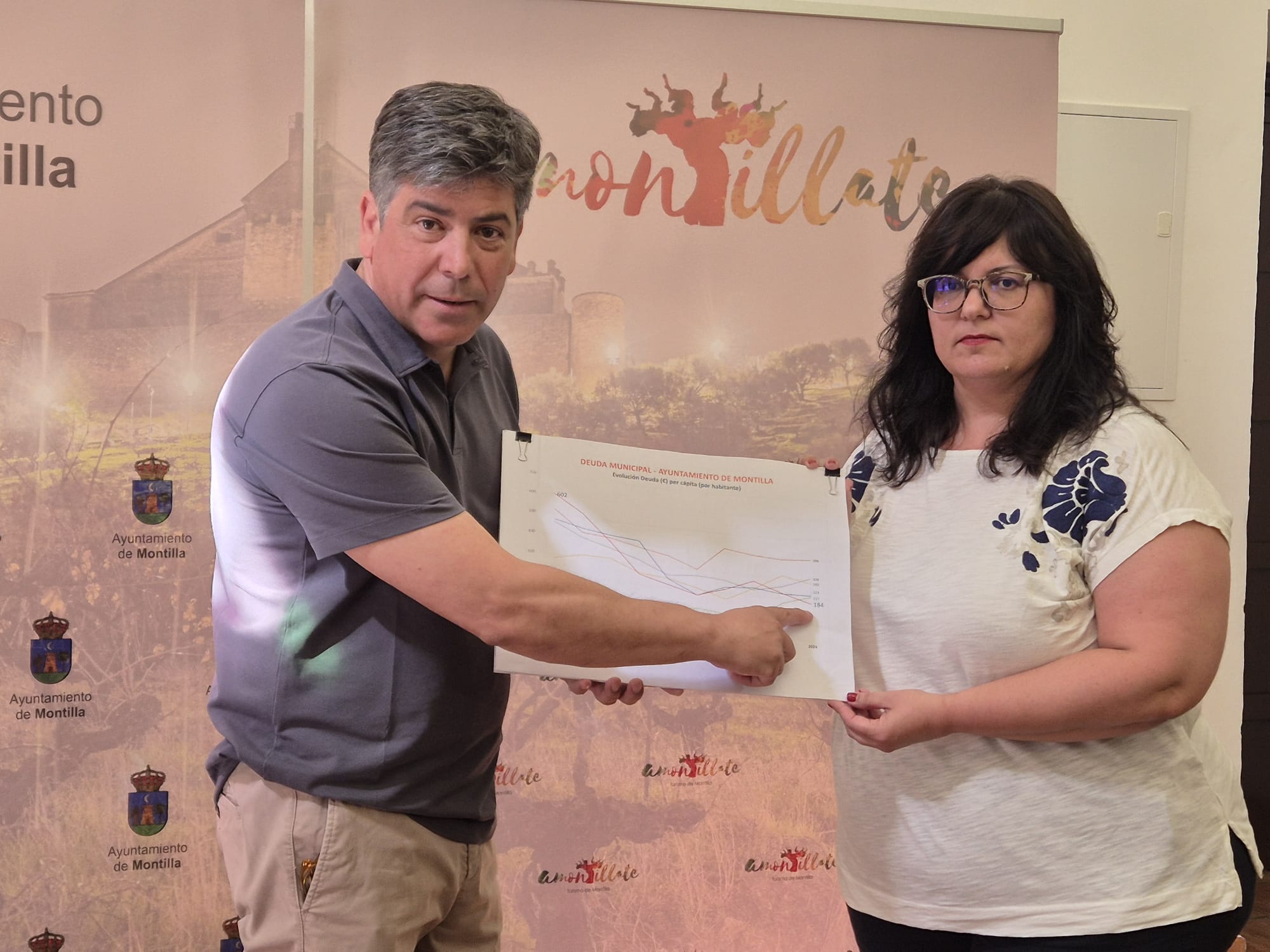 El alcalde Rafael Llamas, acompañado por la teniente de alcalde de Hacienda, Antoñi Ramírez, ha presentado los últimos datos económicos que sitúan a Montilla como uno de los municipios con menor deuda por habitante de la provincia de Córdoba. Además el alcalde ha hecho balance sobre importante reducción de la deuda municipal que desde que llegó al gobierno en 2015 se ha reducido en un 80% .