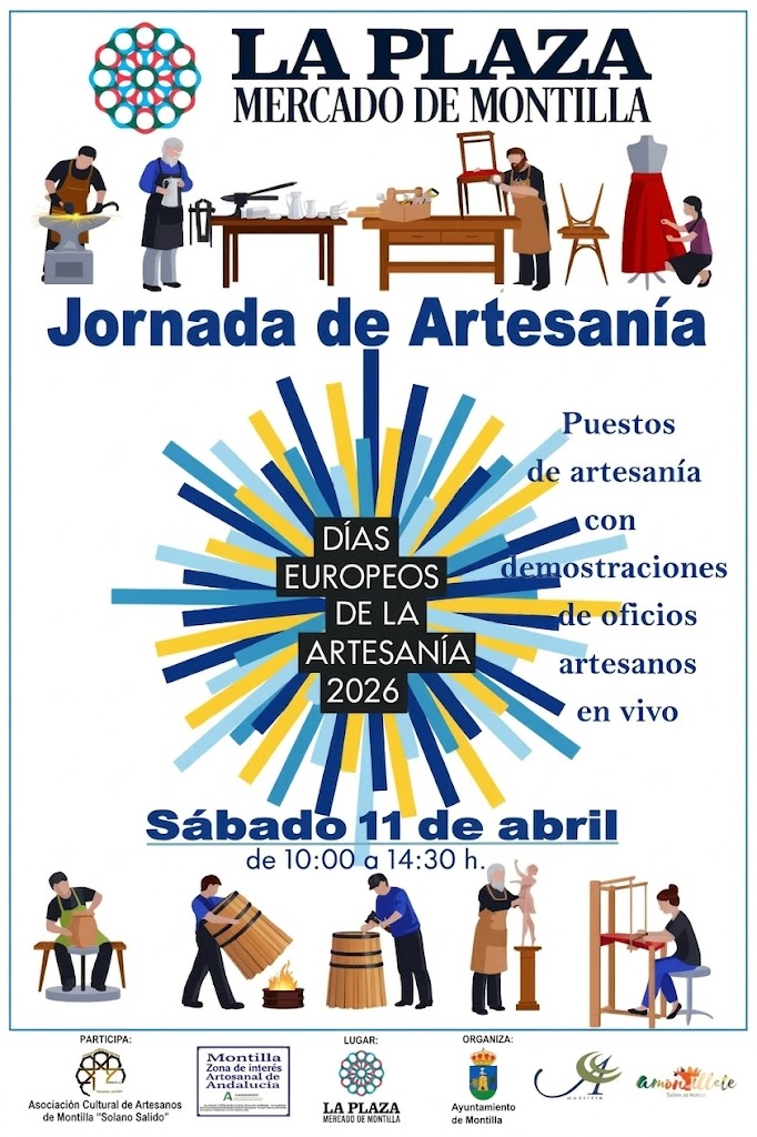 Las actividades en Montilla continuarán este sábado en el Mercado de Abastos, donde varios artesanos instalarán sus puestos para mostrar y acercar al público sus creaciones, especialmente en disciplinas como el textil, el papel o la cerámica, en una jornada abierta que permitirá seguir difundiendo el valor de la artesanía local entre la ciudadanía.