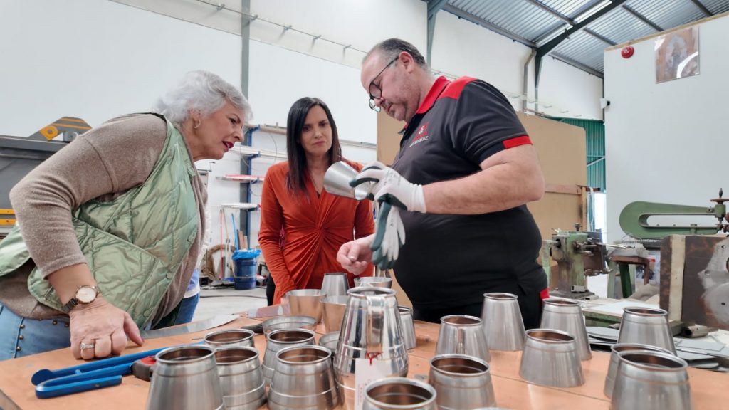 Durante su visita, la delegada ha estado acompañada por el concejal de Desarrollo Económico, Valeriano Rosales, y ha asistido a uno de los talleres incluidos en esta celebración, donde ha podido conocer de primera mano el trabajo del sector. En concreto, ha visitado un taller de calado artístico en madera impartido por el artesano Joaquín Feria en Carpínfe, dirigido a usuarios del centro Futuro Singular de Montilla. Posteriormente, se ha trasladado al taller de Antonio Carrasco, especializado en artesanía en acero inoxidable, y ya por la tarde se ha celebrado un taller de aromaterapia en Arahí Cosmética Natural.